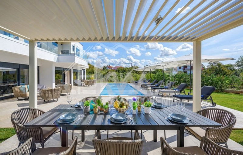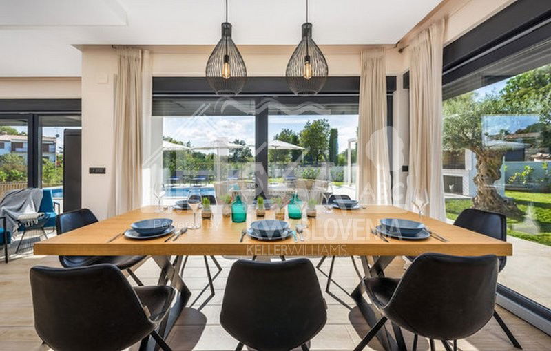 Predstavljamo vam čudovito samostojno hišo z bazenom, zgrajeno leta 2015, na mirni in idilični lokaciji blizu Poreča, le 10 km od mesta. Hiša, z moderno zasnovo, nudi vse udobje, ki ga potrebujete za brezskrbno bivanje.