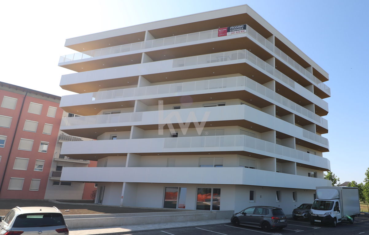Stanovanje zajema: dnevni prostor s kuhinjo in jedilnico 26,55 m2 z izhodom na ložo, spalnica 6,28 m2, kopalnica 6,14 m2, skupaj bivalno: 38.97m2, ostalo: loža: 17,94 m2, shramba v kletnem prostoru 4,10 m2, lastniško parkirno mesto v garaži.