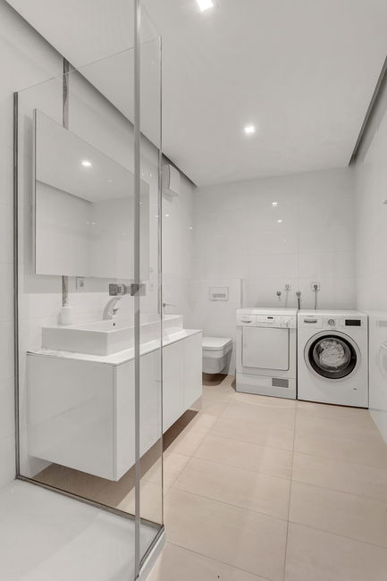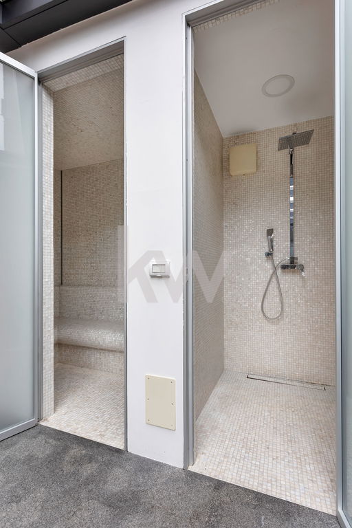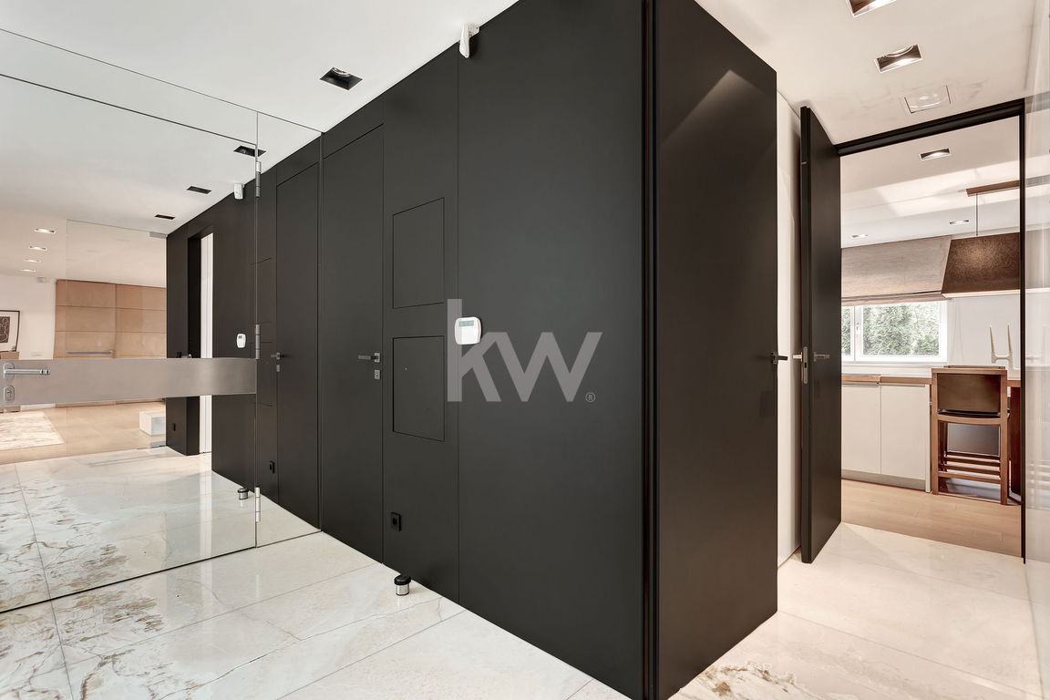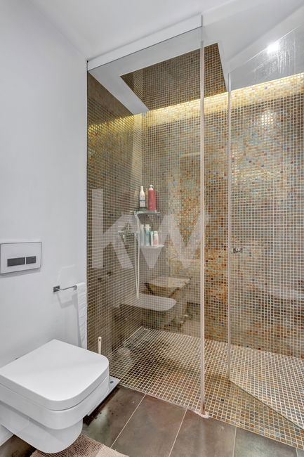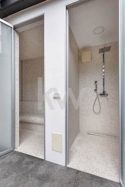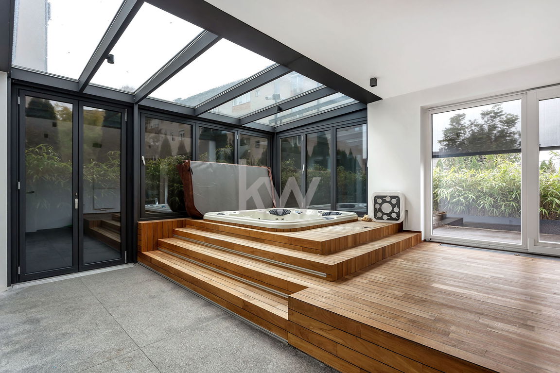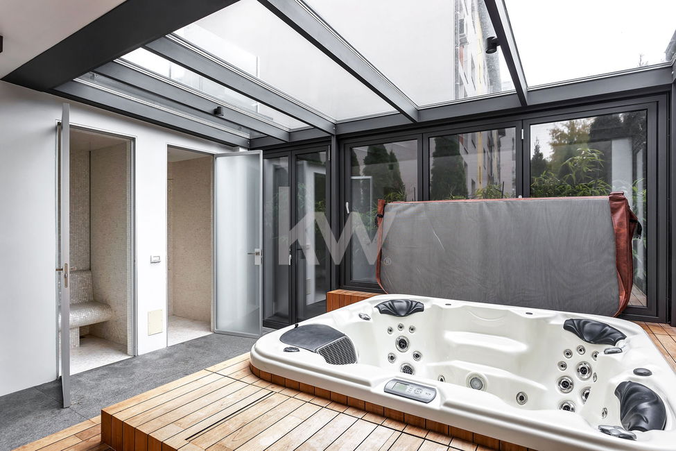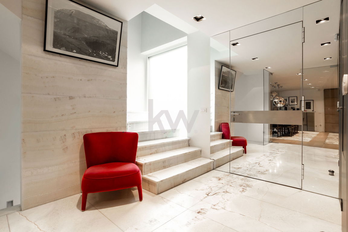 V pritličju se nahajajo predsoba, wc za goste, kuhinja z jedilnico, v povezavi z velikim dnevnim prostorom, moderni kamin, zimski vrt, terasa, turška savna, jacuzzi in kopalnica (oprema Poliform), ter velika spalnica z lastno kopalnico.