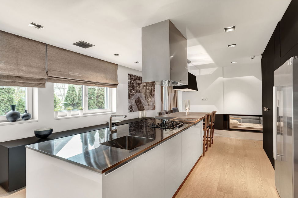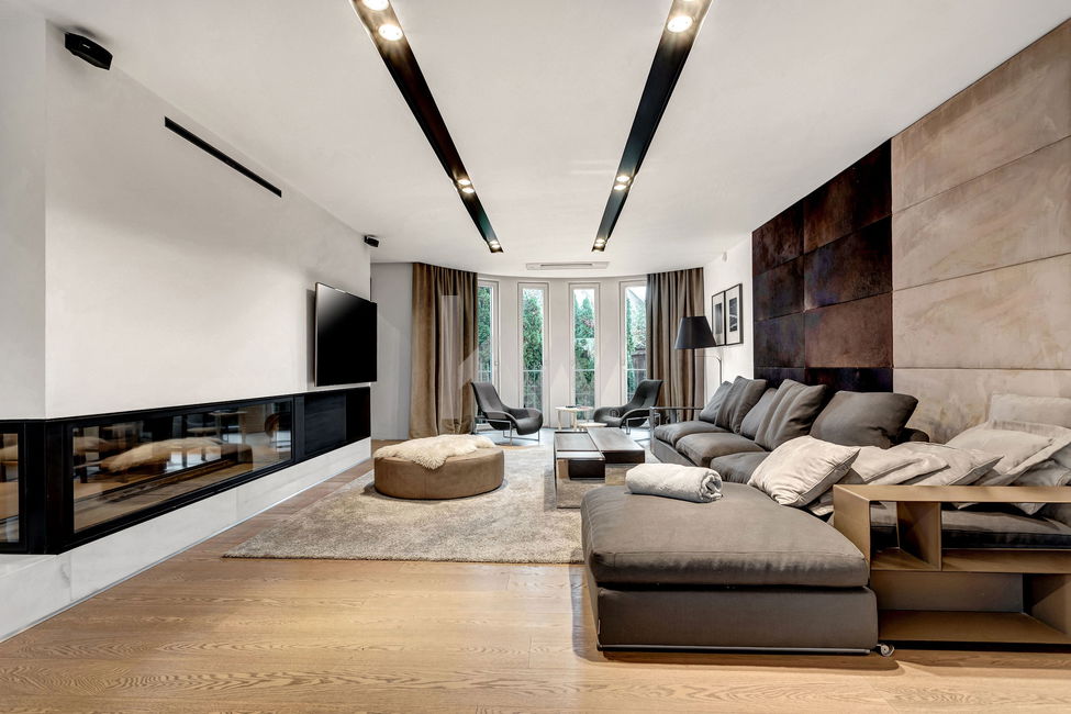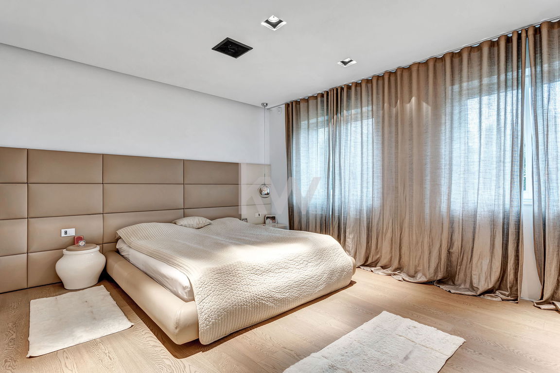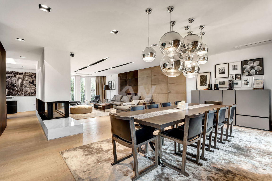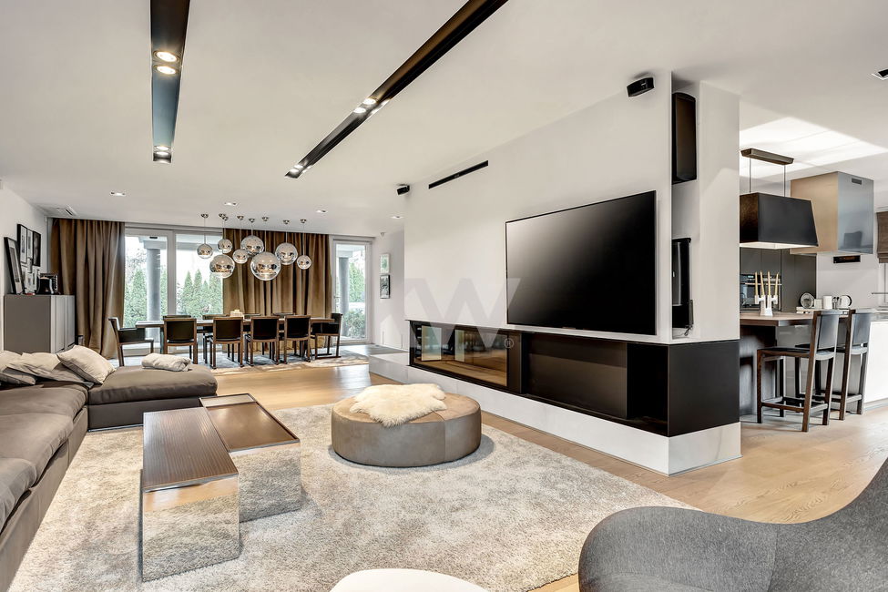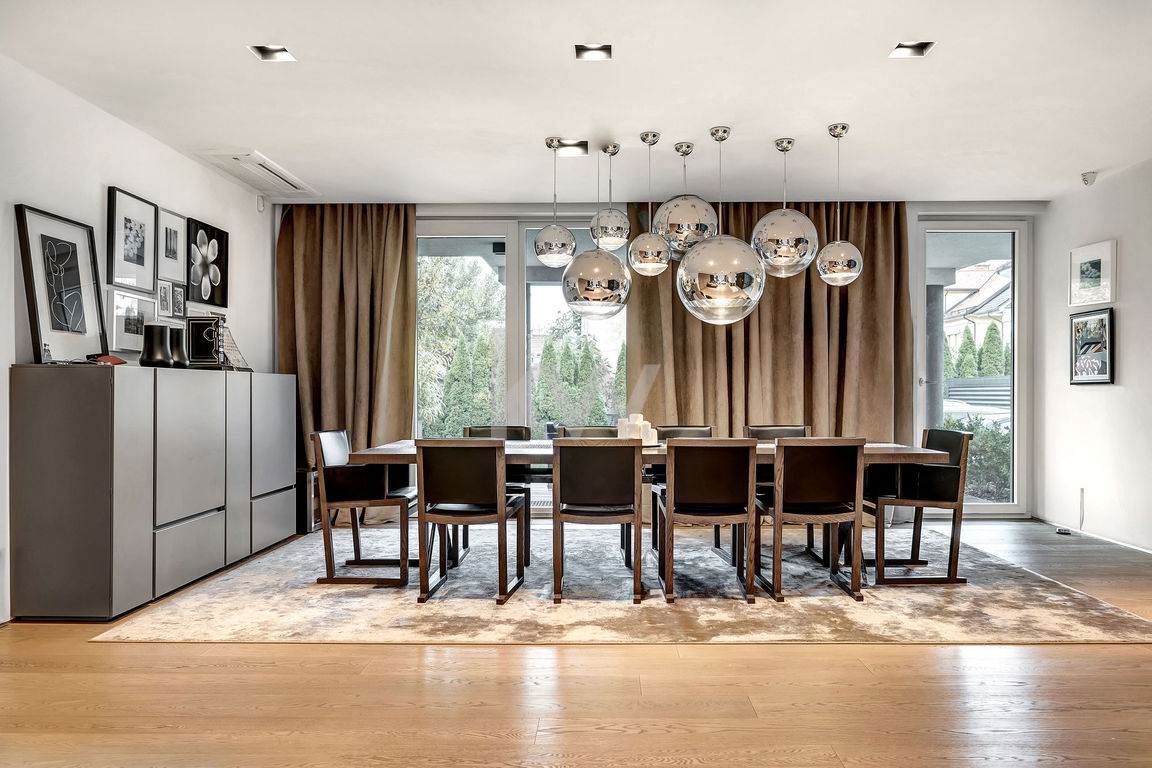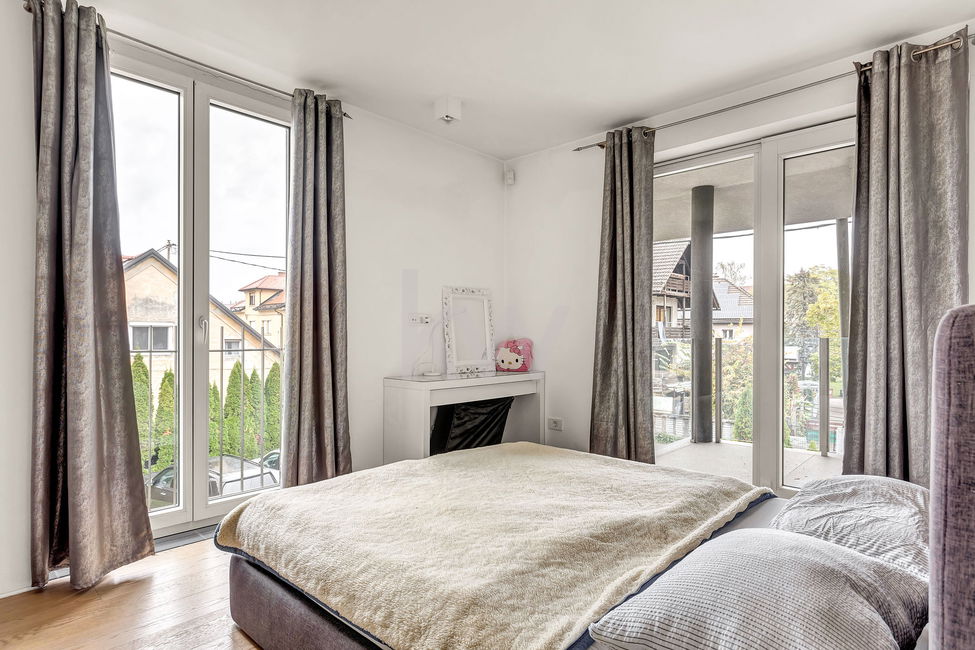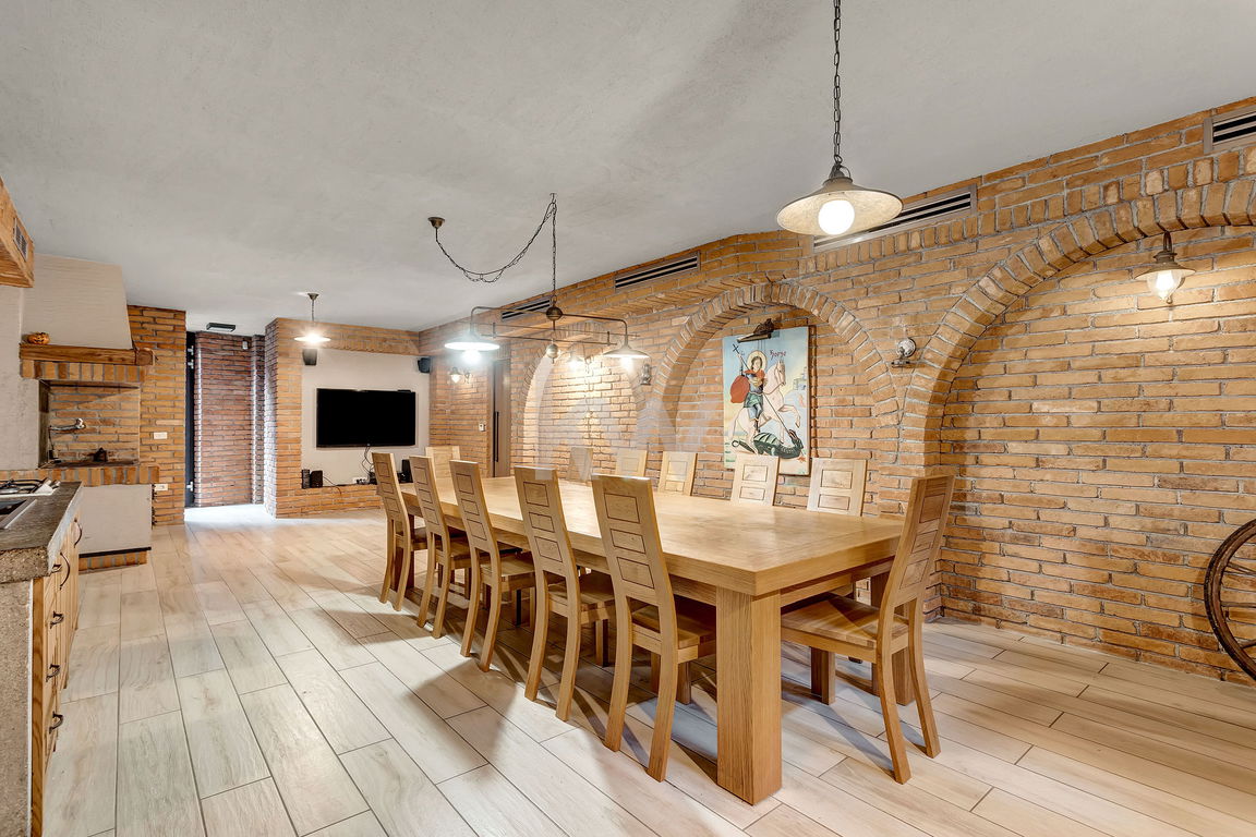 Moderna zasnova, kvalitetna izdelava, pohištvo višjega cenovnega razreda so karakteristike, ki opisujejo nadstandardno hišo, katera se razprostira v treh etažah.
