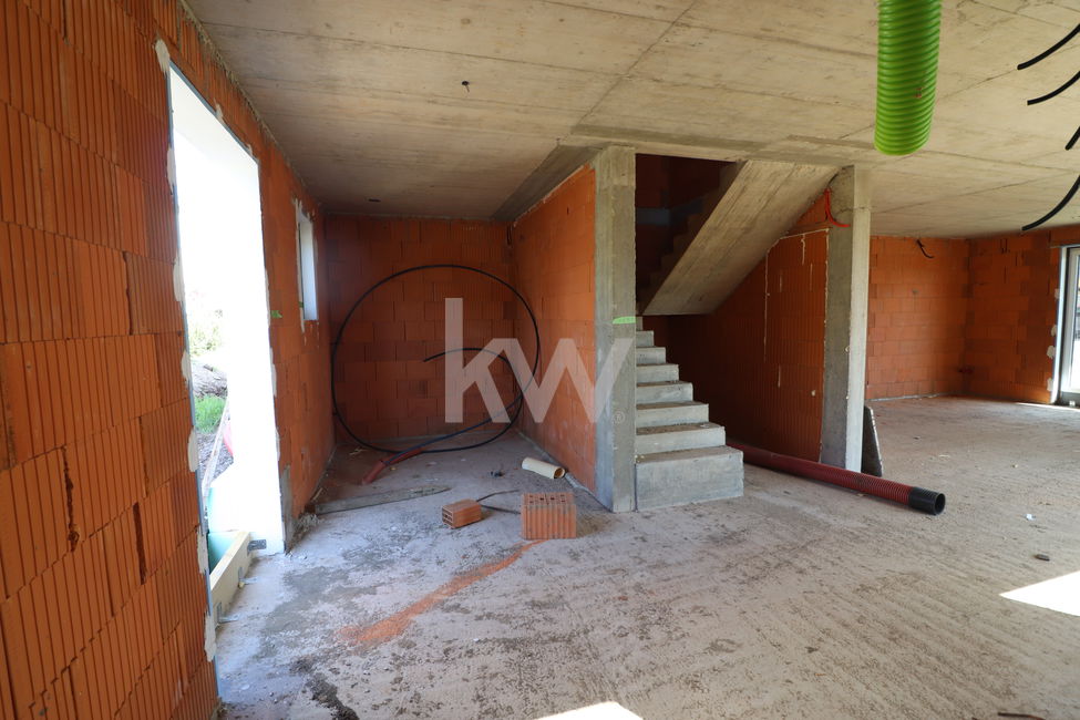 Notranje stene: Predelne stene hiše bodo izvedeno delo iz opeke in delno iz mavčno kartonskih plošč na kovinski pod konstrukciji. Med profili bo nameščena izolacija. Stene bodo glajene in finalno barvane. Stene kopalnicah bodo obložene s keramiko (na željo kupca se lahko položi samo delno keramika in delno barvano). Vogalni stiki keramičnih ploščic bodo izvedeni z zaključnimi ALU profili.
