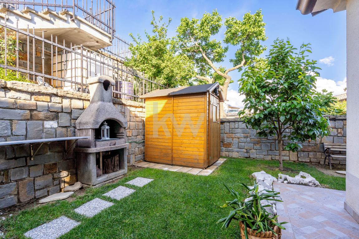 - Dvorišče: Urejen travnik z dvema zelenjavnima gredama in vrtno lopo