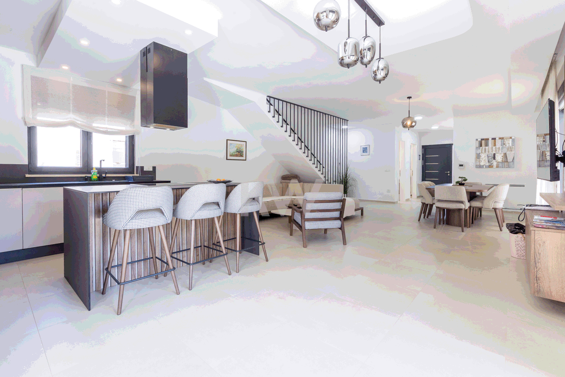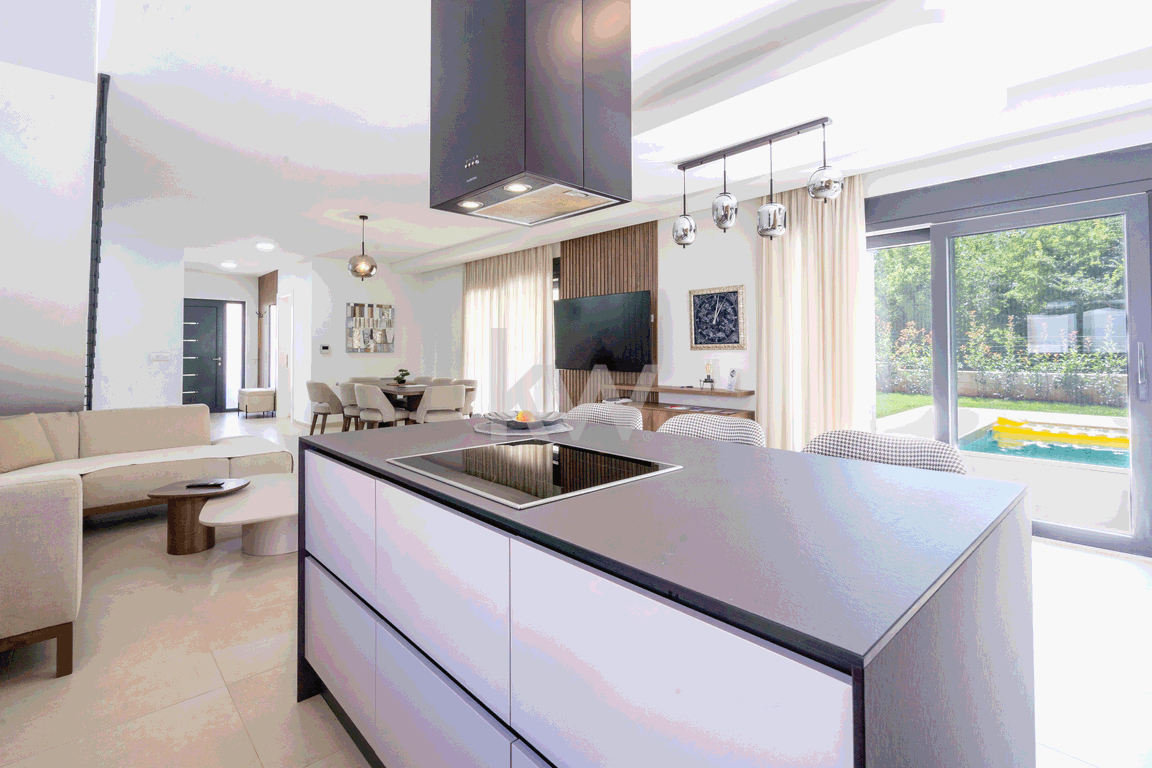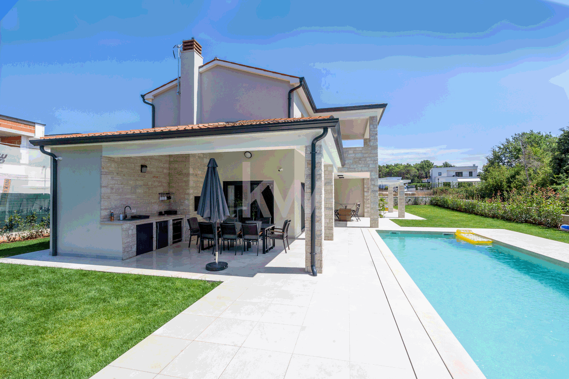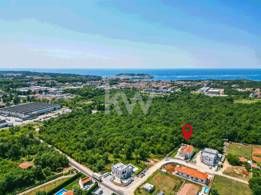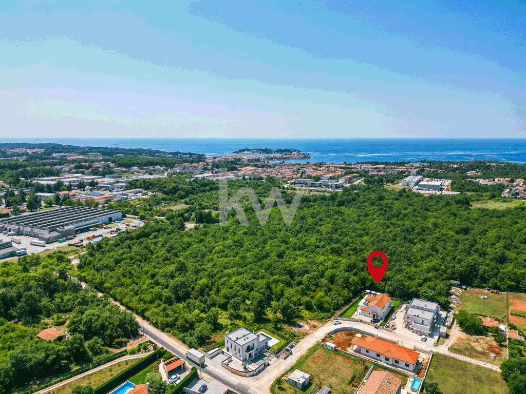 Luksuzna vila se nahaja na izjemni lokaciji. Oddaljenost od centra Poreča ter plaž je približno 3,5 kilometrov, v oddaljenosti zgolj 700 metrov se nahaja tudi več trgovin kot so Lidl, Plodine, Kaufland ipd.