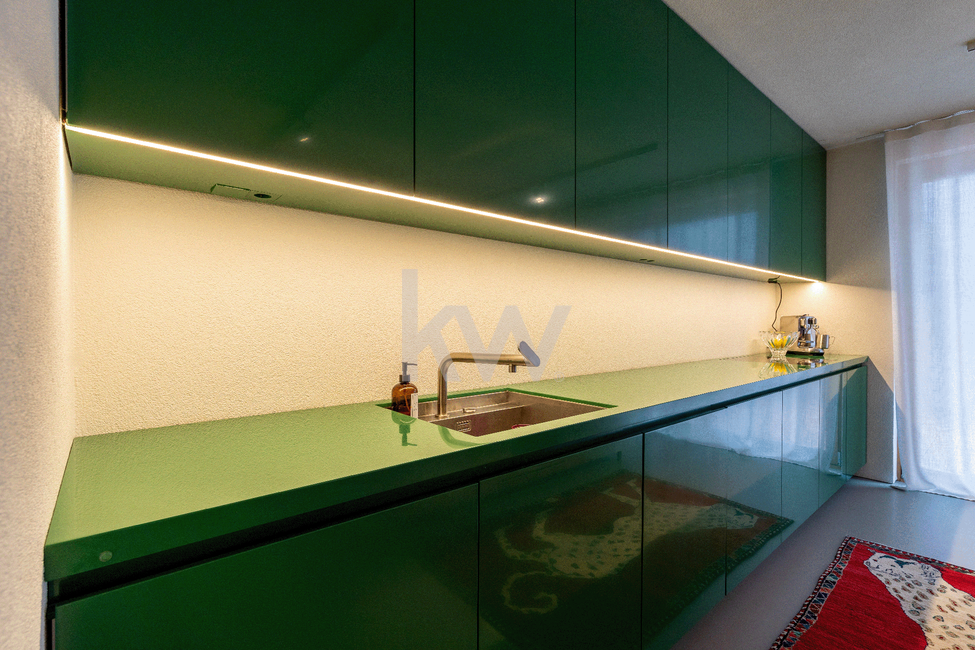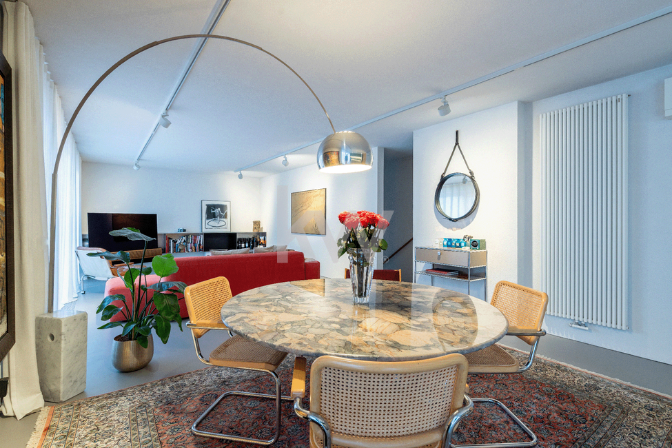 - Vrstna hiša je opremljena z nadstandardno opremo, kot tudi z po meri narejenimi mizarskimi deli.
