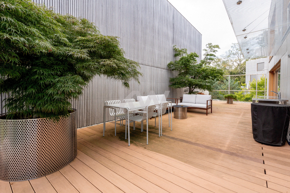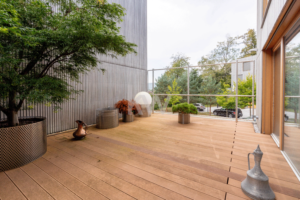 - Terasa z 9 letnimi japonskimi javorji in avtomatskim zalivanjem, ipd.