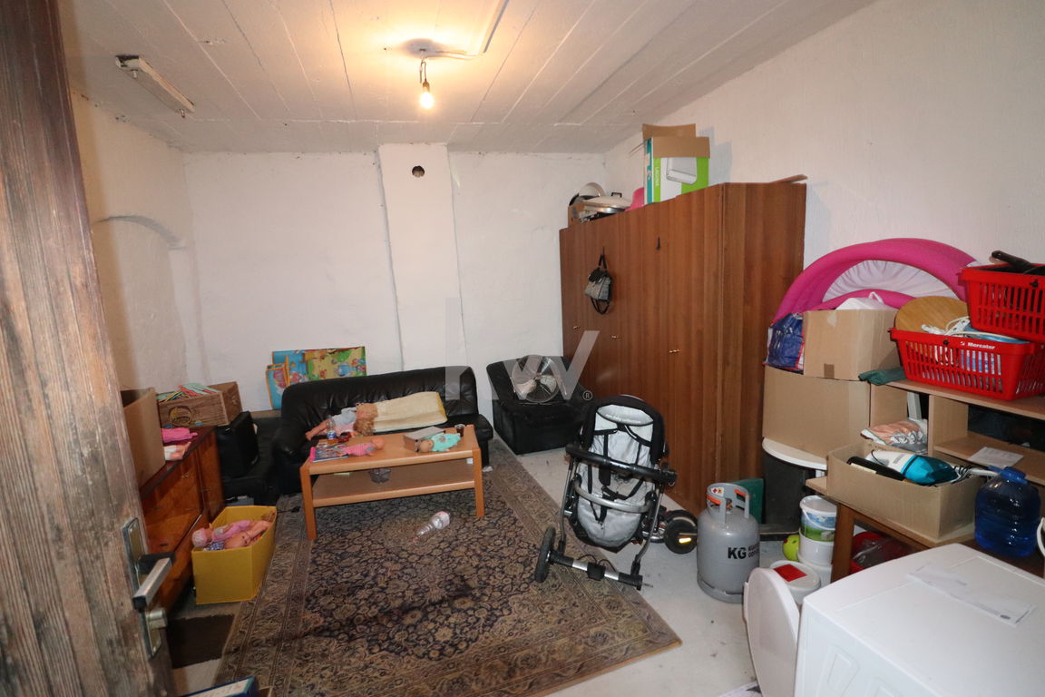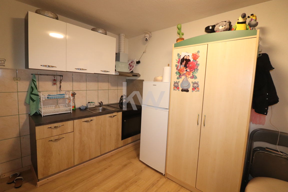 predprostor, kopalnica s tušem in ločen wc, kuhinja z jedilnico in dnevnim prostorom, spalnica in shramba v kletnem prostoru z dodatnim prostorom