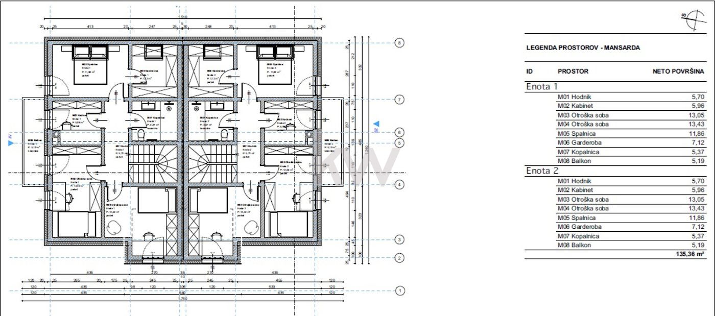 Predvidena je izgradnja stanovanjskega dvojčka etažnosti K+P+M v skupni bruto tlorisni površini 579,80m2 in oporni zid višine 6m, širine 0,6m in globine 8m. Skupna velikost gradbene parcele je 1.093m2.