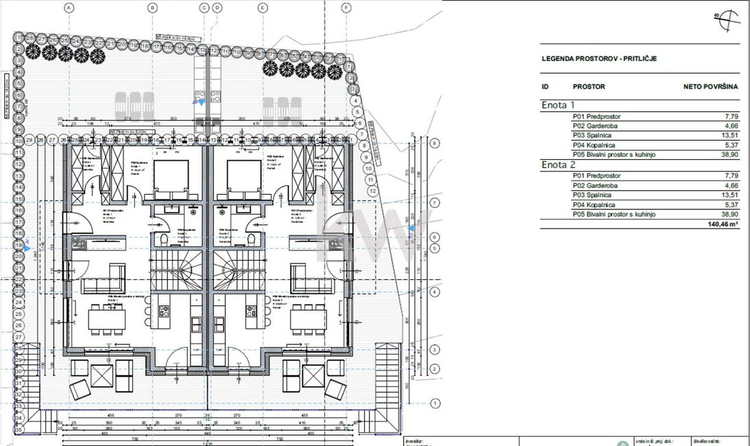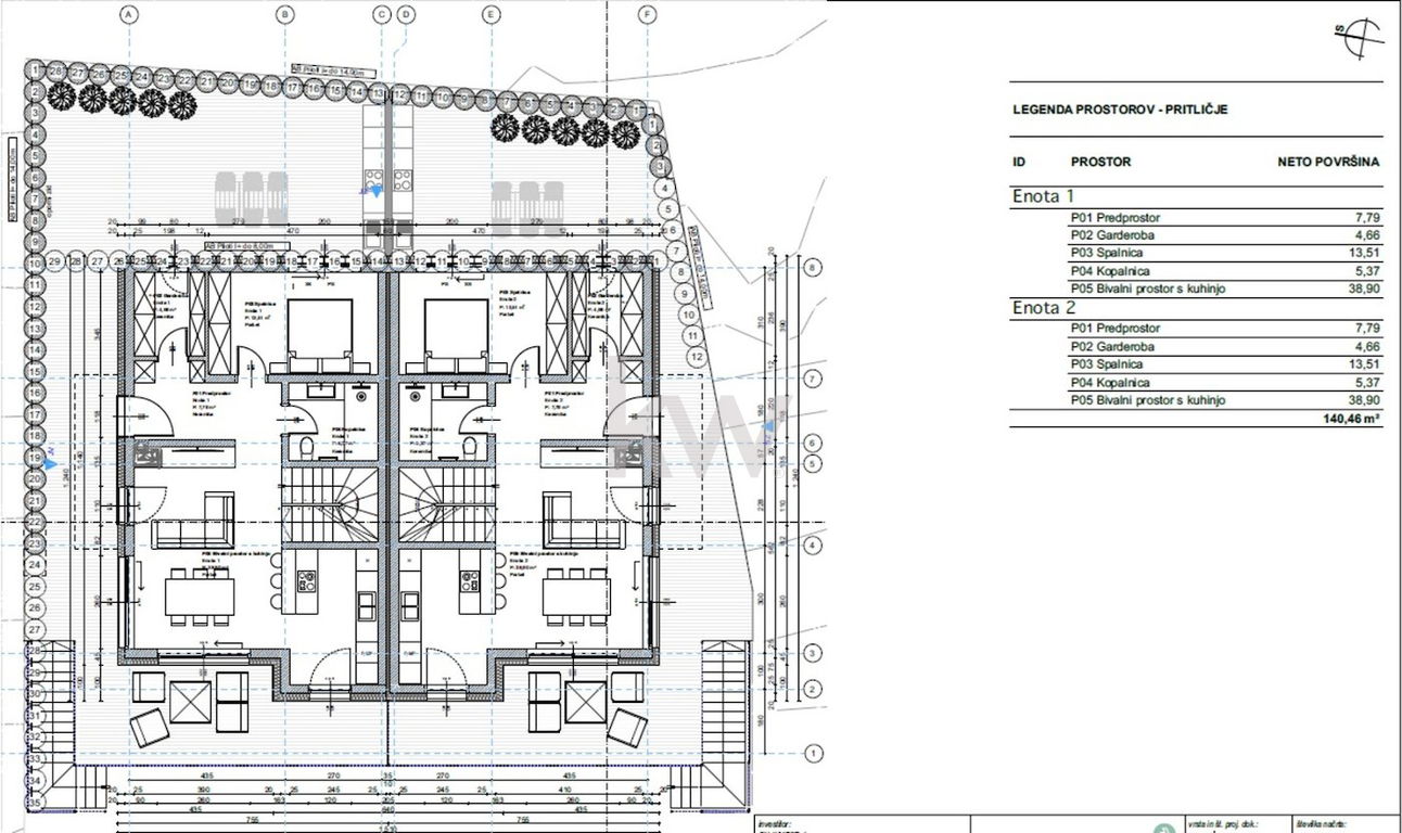 v nakup vam lahko ponudimo zazidljivo zemljišče v skupni površini 1.261m2, z izdelano DGD dokumentacijo za stanovanjski dvojček z opornim zidom.