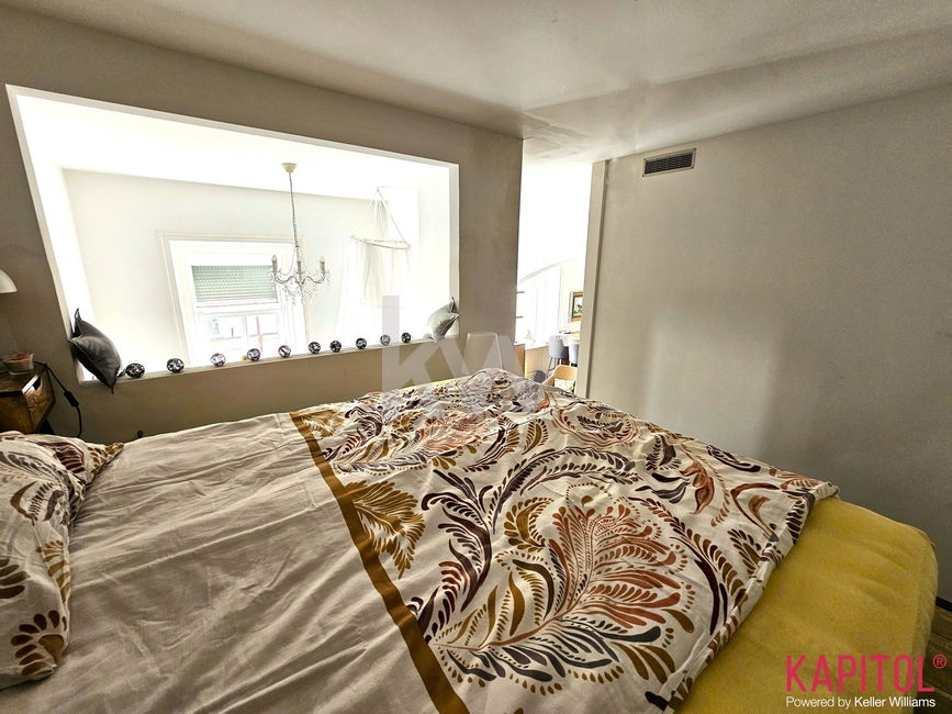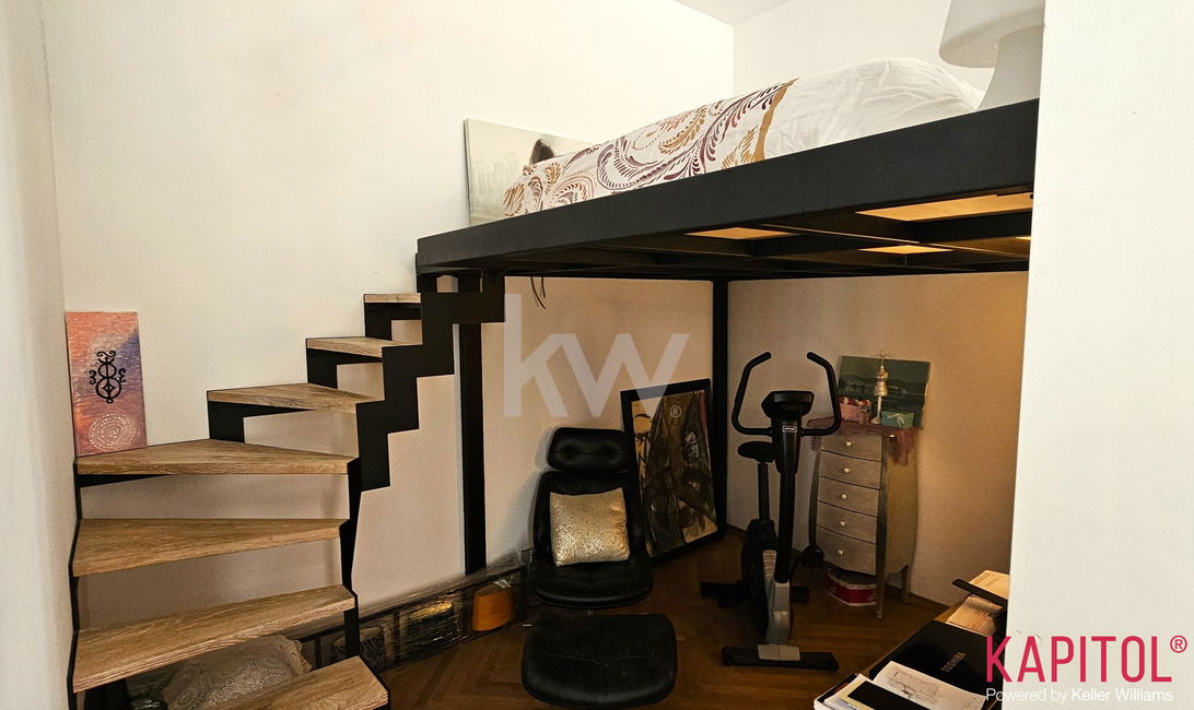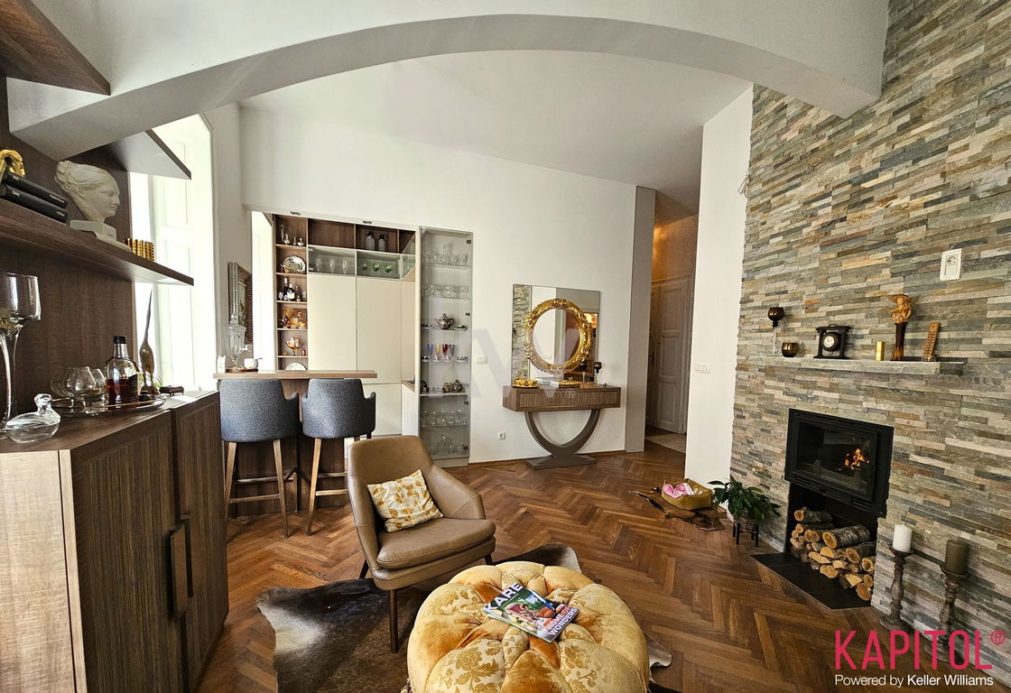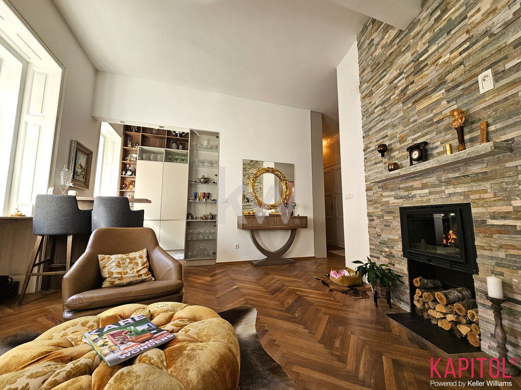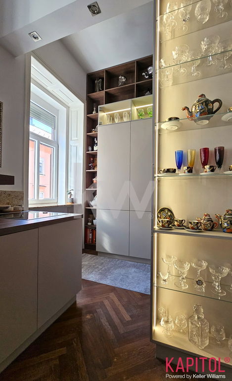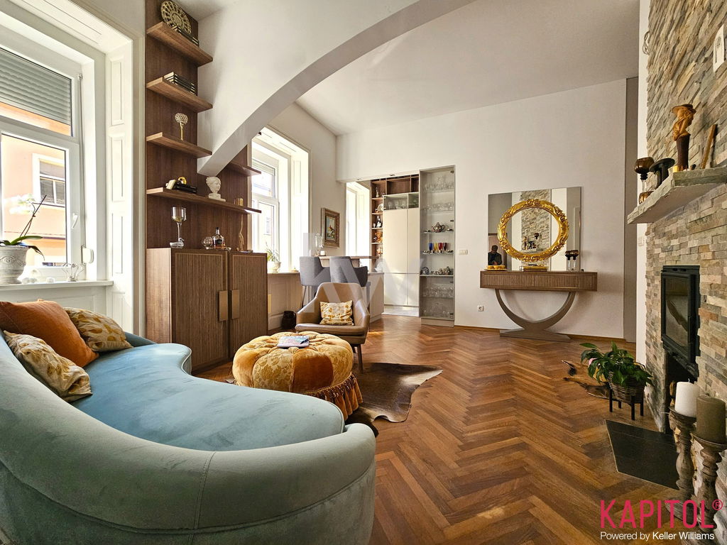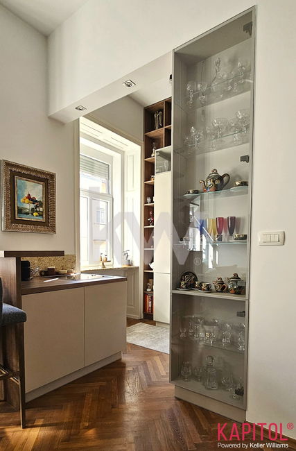 Stanovanje odlikuje ugodna lega – sončna svetloba bogato obsije prostorne sobane, široka okna odpirajo razgled na mestni vrvež, visoki stropi pa vdihujejo bivališču občutek prostornosti in ugodja.