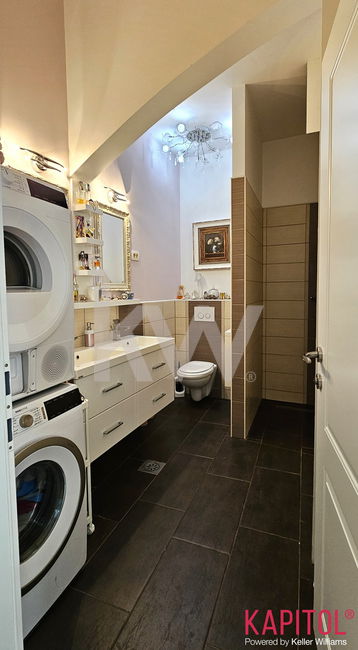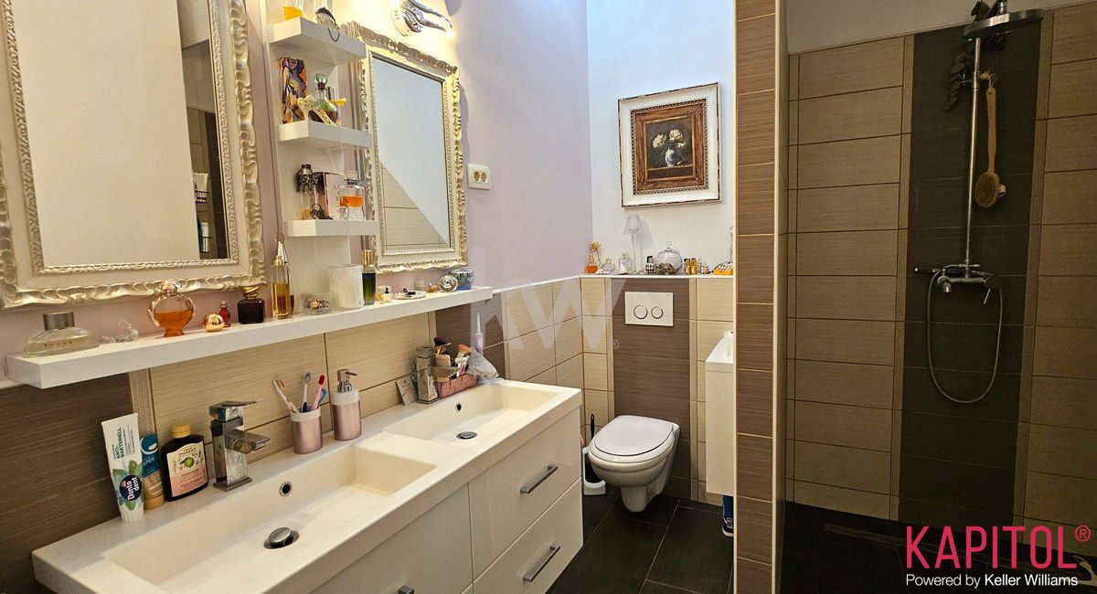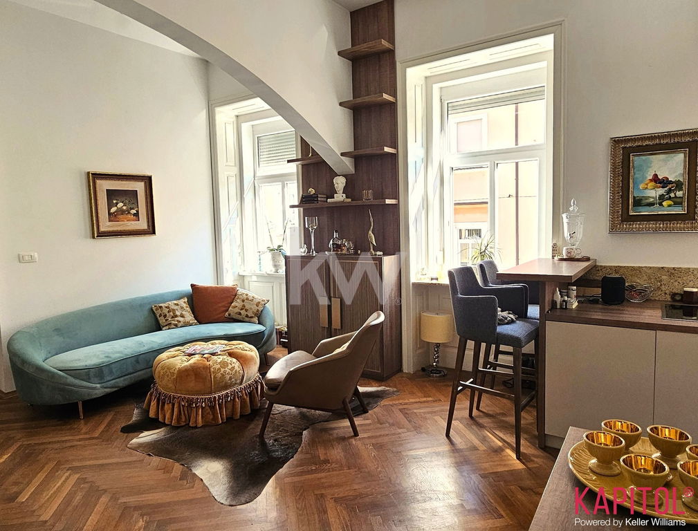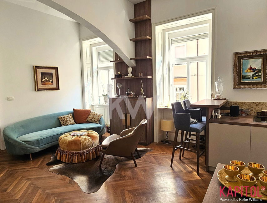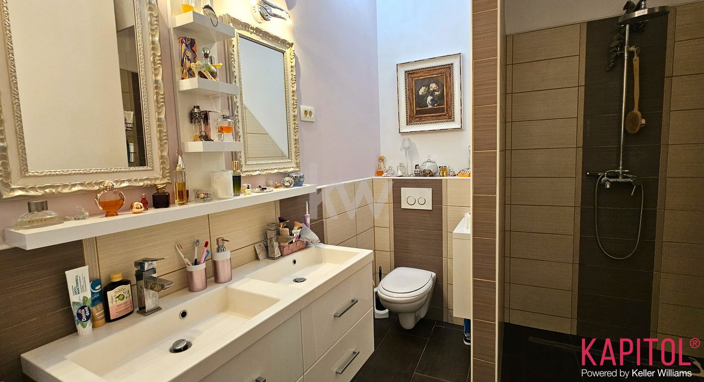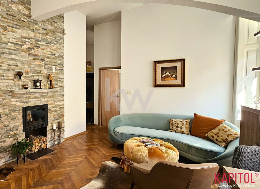 Stanovanje odlikuje ugodna lega – sončna svetloba bogato obsije prostorne sobane, široka okna odpirajo razgled na mestni vrvež, visoki stropi pa vdihujejo bivališču občutek prostornosti in ugodja.