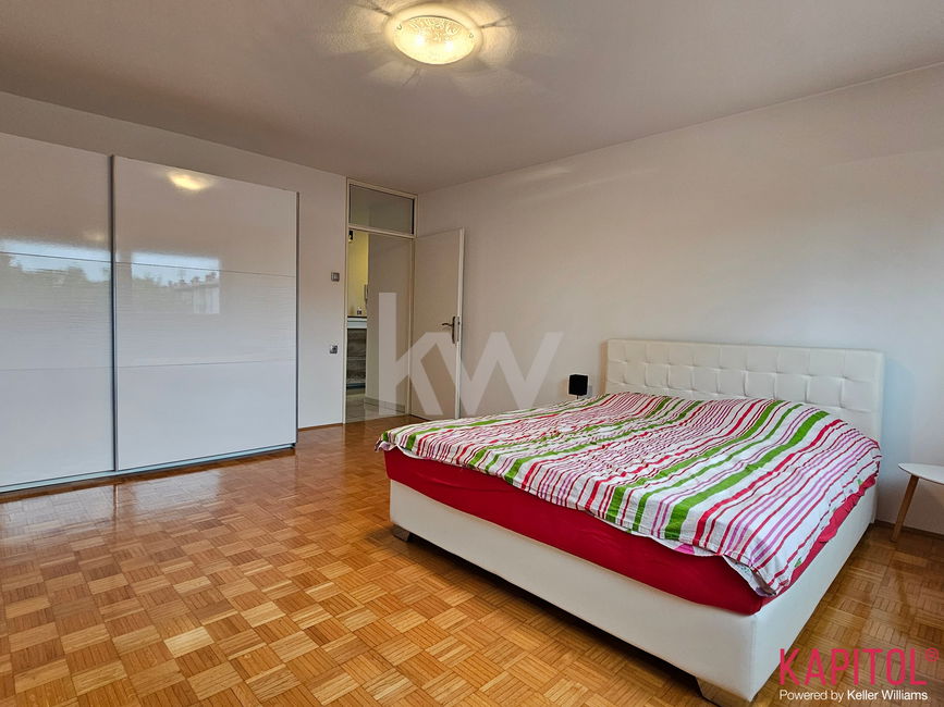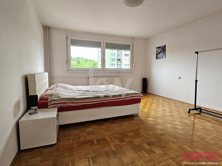 Stanovanje obsega prostorno dnevno sobo, dve ločeni spalnici, kuhinjo z jedilnim kotom, kopalnico in WC. Poseben čar mu daje velika pokrita loža s panoramsko steno iz dnevnega prostora, idealno za jutranjo kavico ali sprostitev po delu. Poleg tega ima stanovanje še pripadajočo klet, kar zagotavlja dodatne shranjevalne površine.
