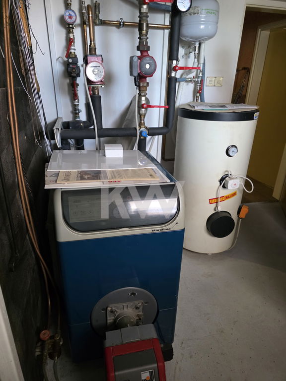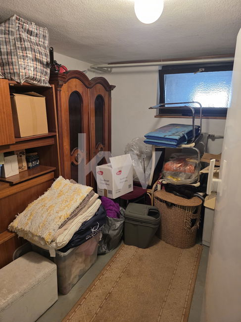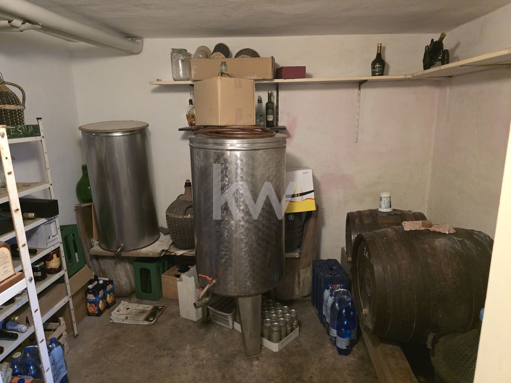 KLETNI PROSTOR: pokriti vhod, dvojna garažna vrata na električno odpiranje dvižnih vrat ter prostor za 3 avtomobile, shramba, kurilnica s pečjo na toplotno črpalko in s pečjo na kurilno lje z dvema rezervoarjema v velikosti 2000l, predprostor oziroma shramba, kletni prostor za shrambo ozimnice in vina, stopnišče zidano in vhod v pritličje
