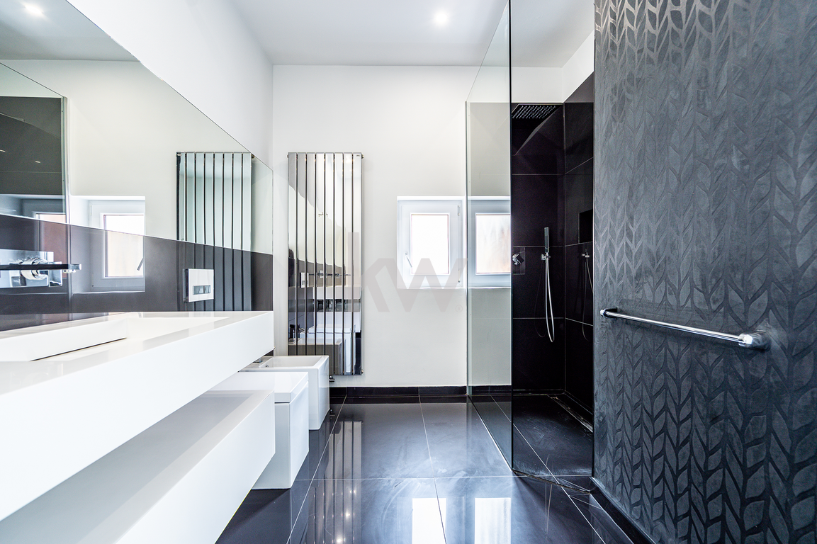 kopalnica s tušem in dvema umivalnikoma – 9,20 m²