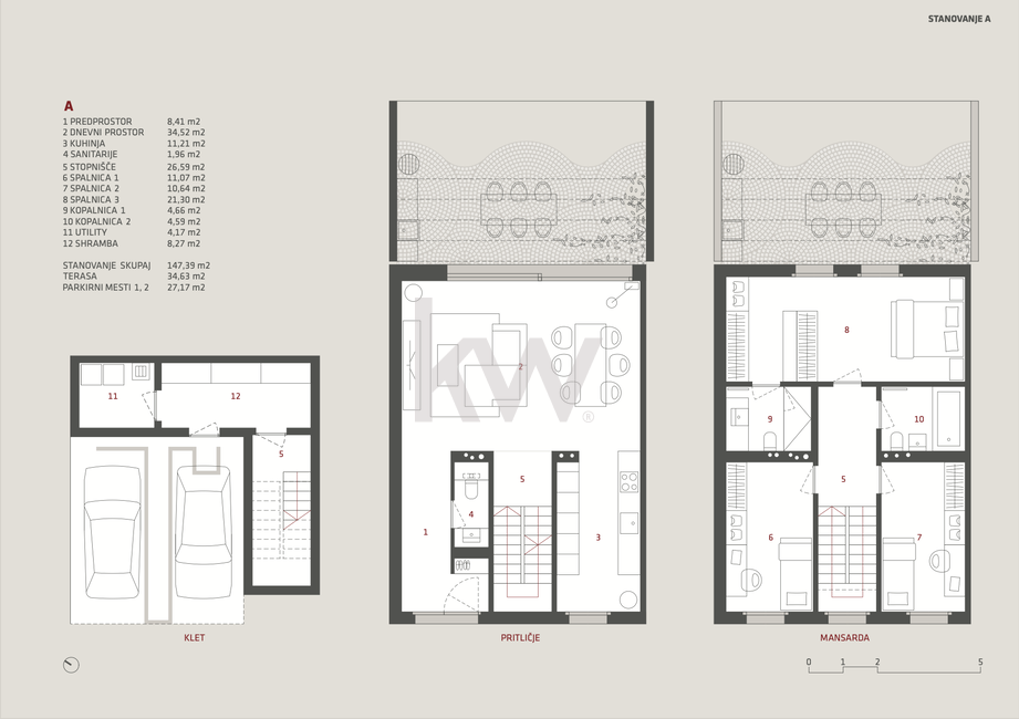 atrij (35,77 m²) – zasebna zunanja oaza za sprostitev.