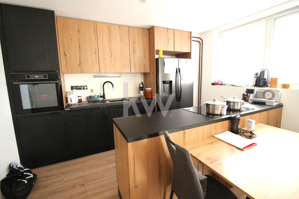 kuhinja z jedilnico, povezana s prostornim dnevnim prostorom,