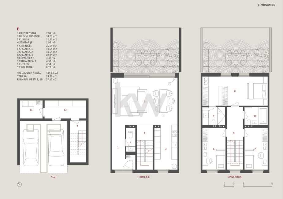 atrij (33,29 m²) – zasebna zunanja oaza za sprostitev.