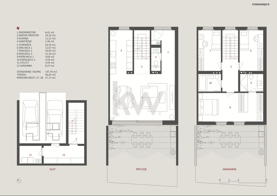 atrij (46,65 m²) – zasebna zunanja oaza za sprostitev.
