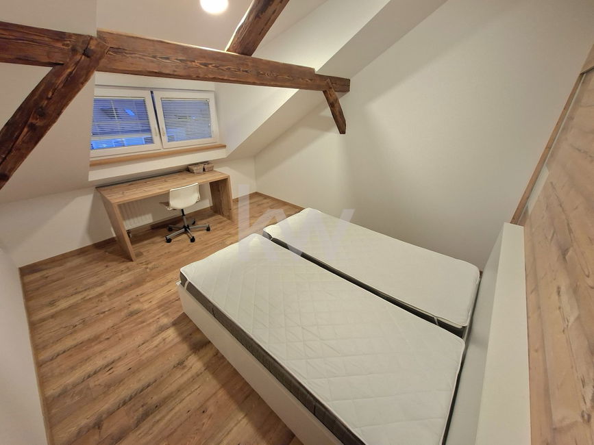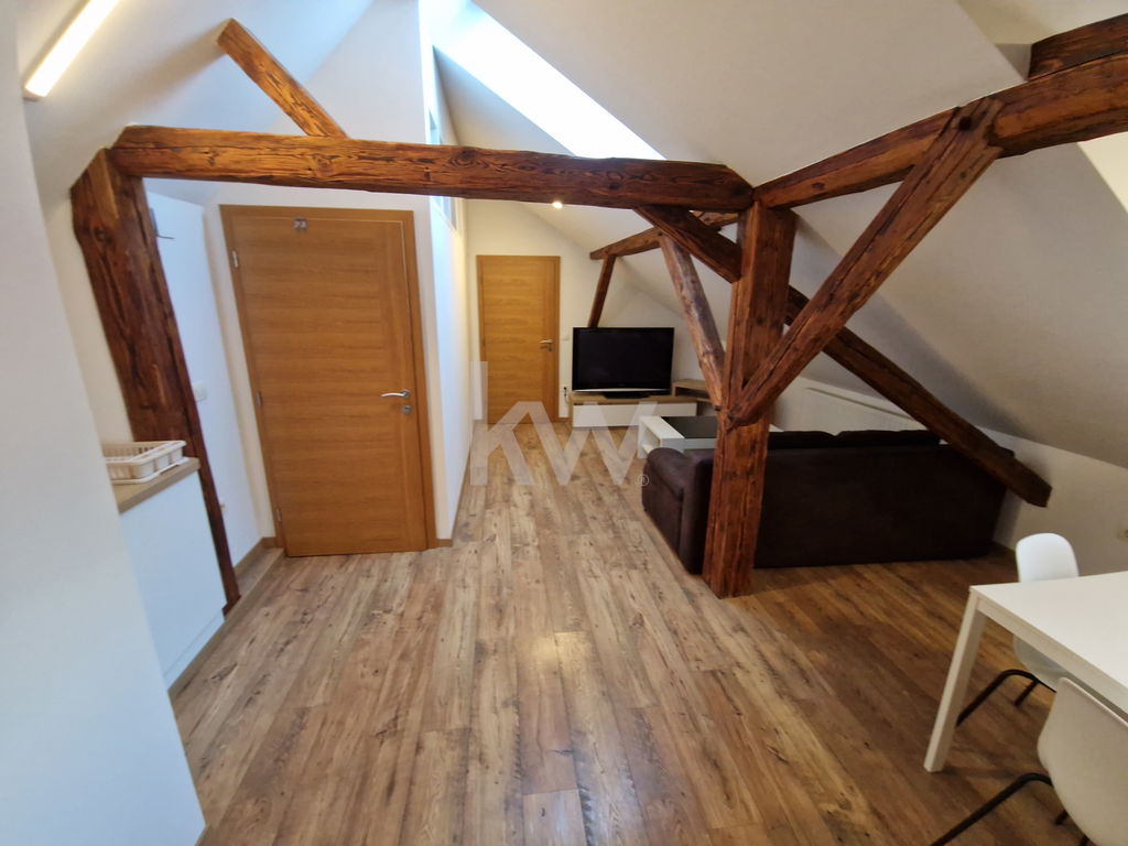 v nakup vam lahko ponudimo staromeščansko dupleks stanovanje velikosti 104,40m2, ki se nahaja v 1. nadstropju in mansardi staromeščanske stavbe v strogem centru mesta Laško.