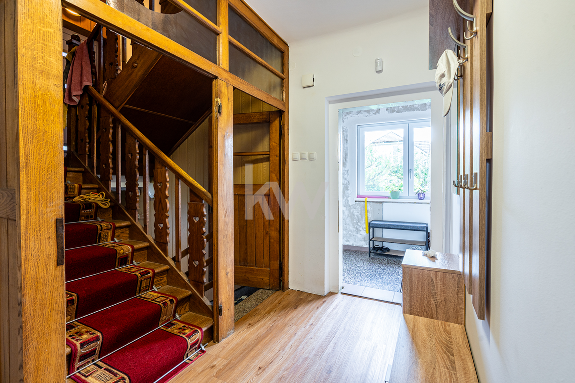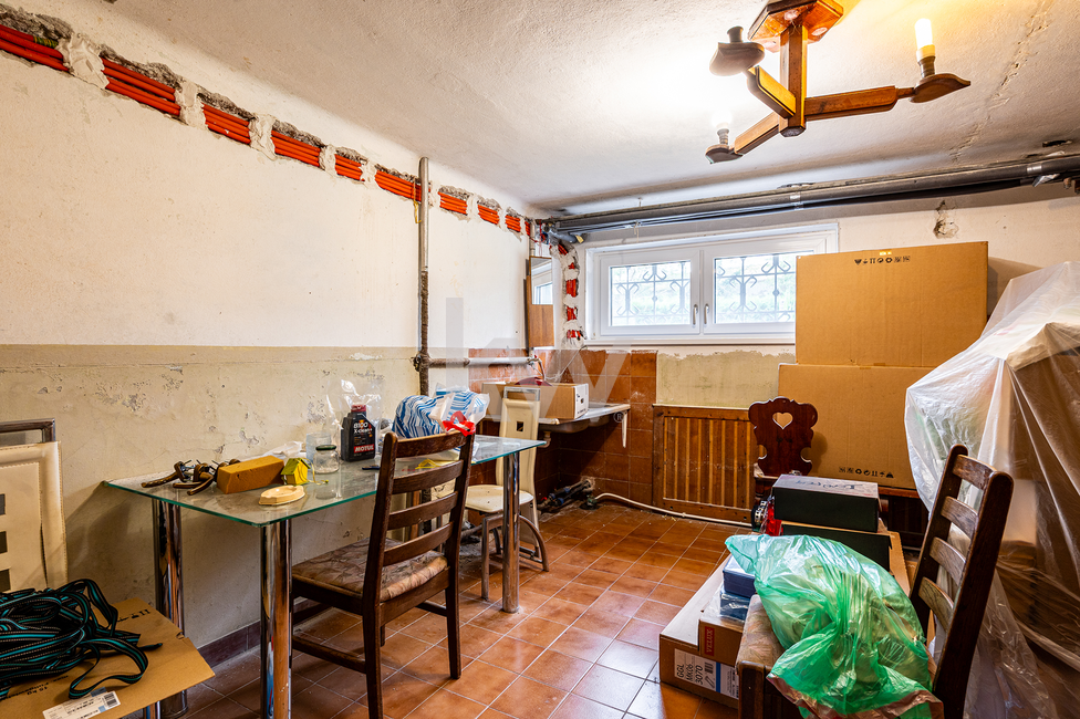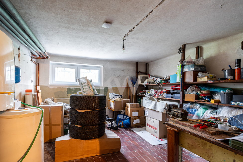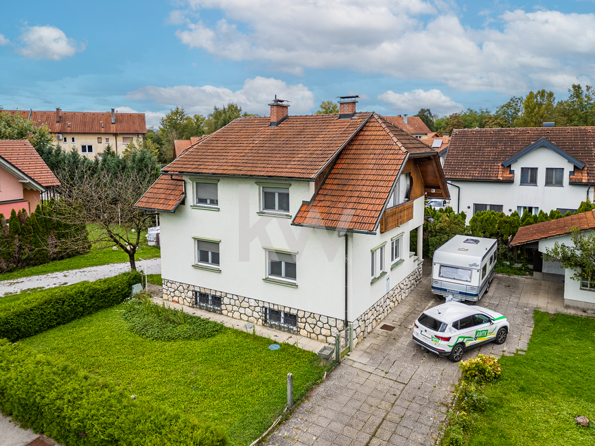 Zraven nadstreška za dva avtomobila, hiša nudi tudi veliko garažo. Hiša ponuja velik potencial za večje družine ali investitorje, saj jo je mogoče preurediti v dvo- ali trostanovanjsko hišo z ločenimi vhodi in skupnim stopniščem.