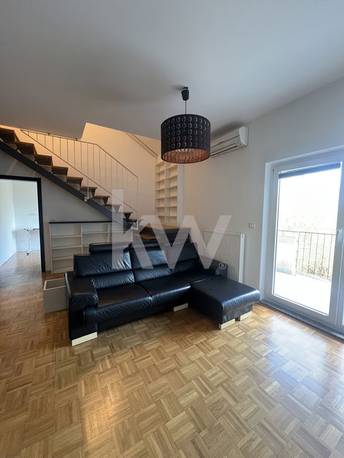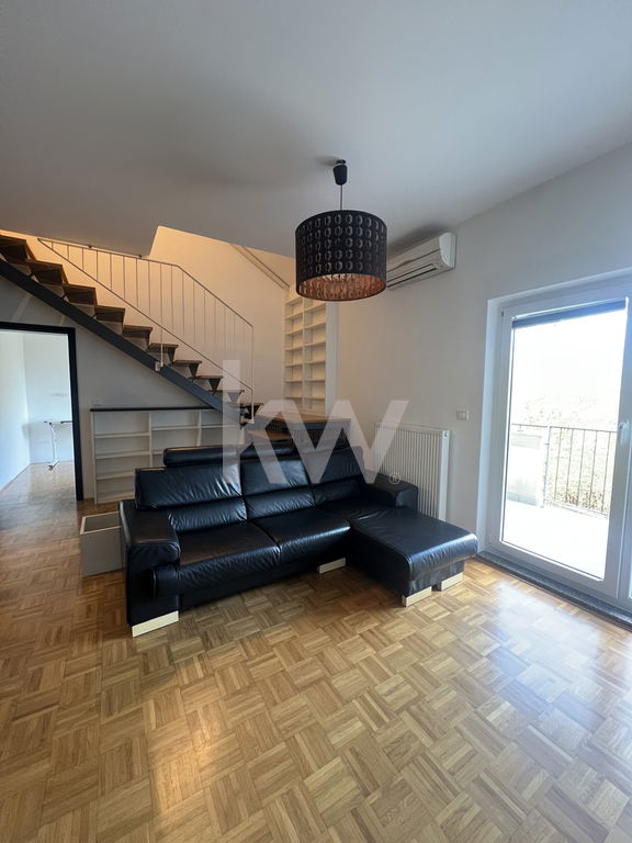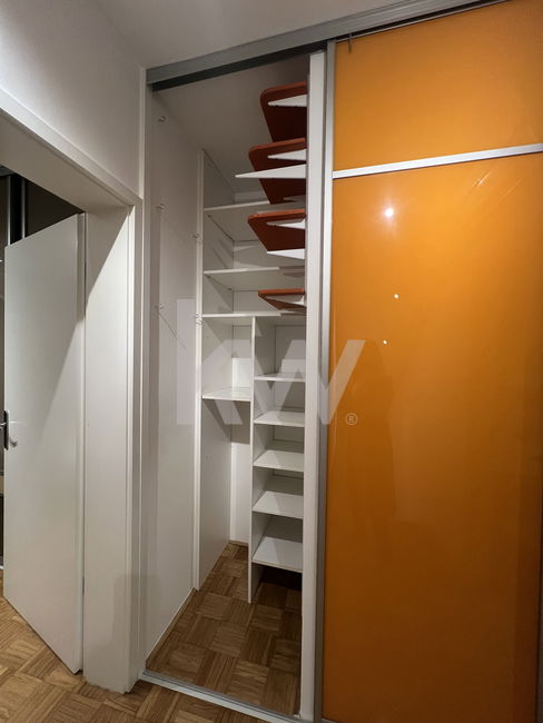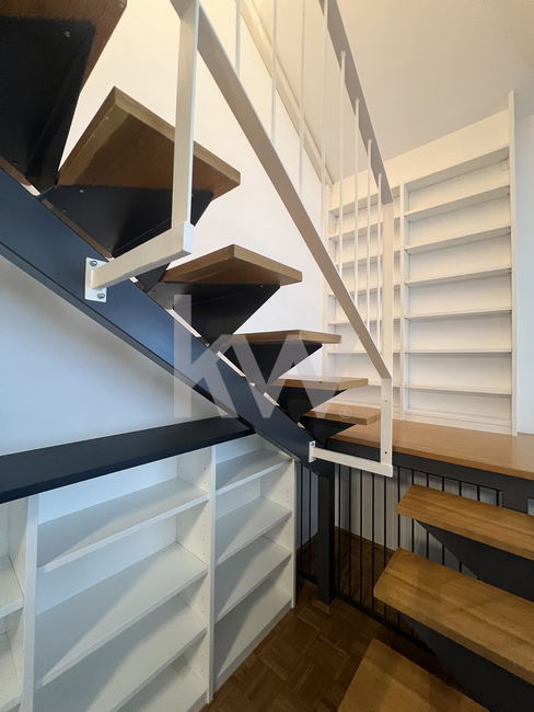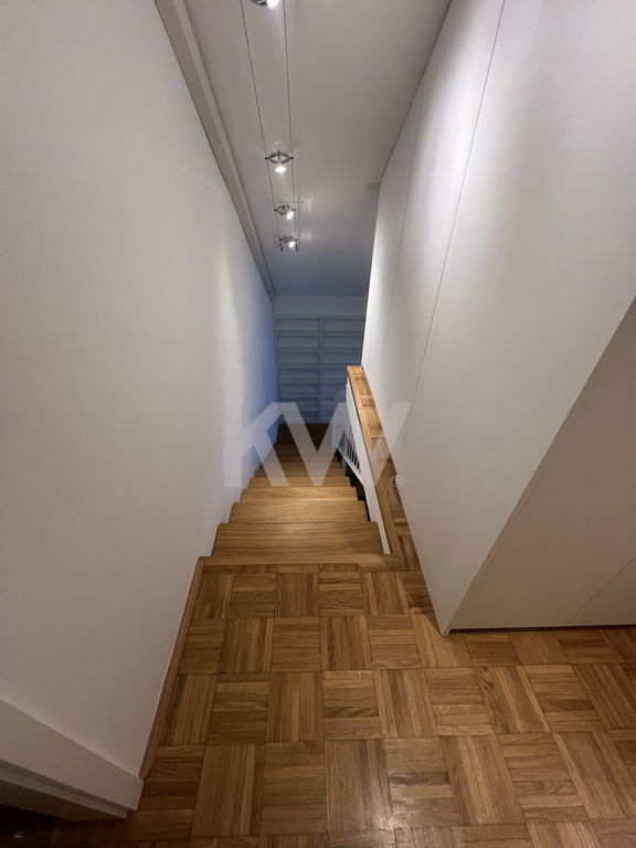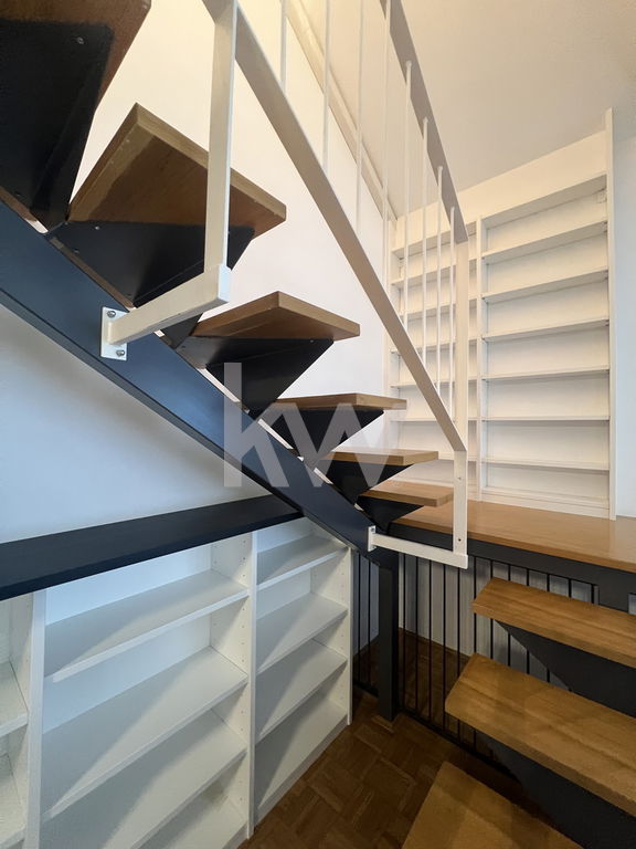 Premišljena razporeditev. Skupna površina stanovanja znaša 104 m², zračnost prostorov pa dodatno poudarja višina stropa 2,9 m.