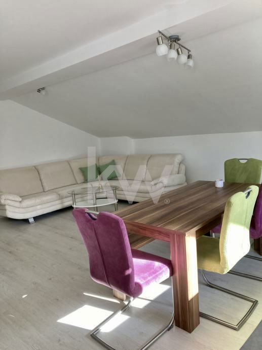 - Mansarda: Na novo urejeno in opremljeno trisobno stanovanje (100 m²), ki vključuje osrednji prostor z dnevnim delom, jedilnico in kuhinjo, kopalnico ter dve sobi (prazna otroška soba in spalnica z zakonsko posteljo). Potrebno je urediti ogrevanje (električno ali s pečjo na trdo gorivo).