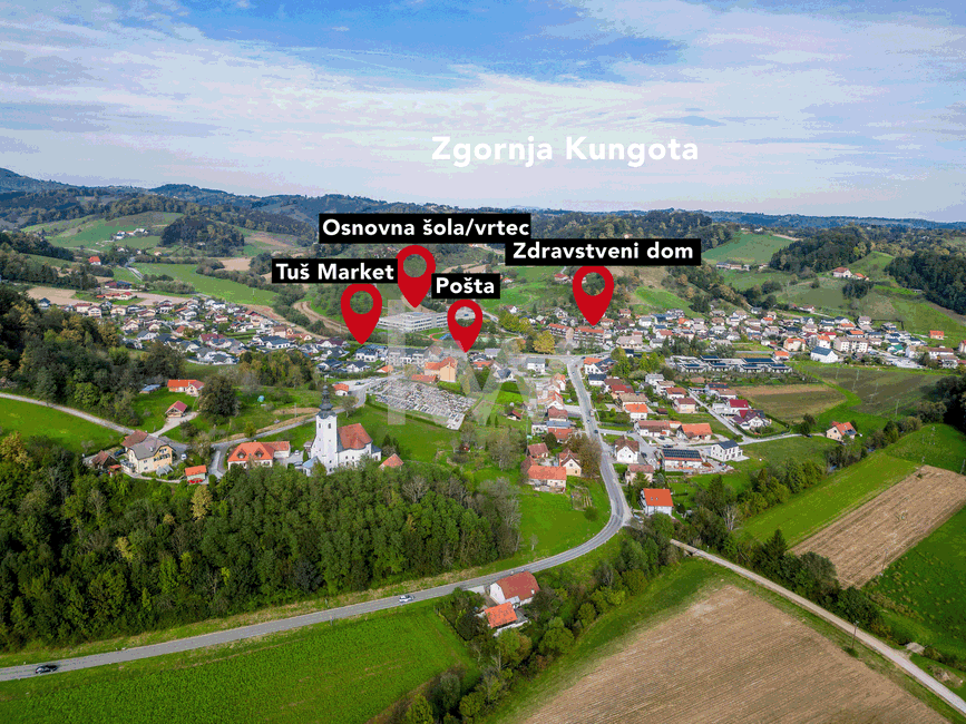 V Zgornji Kungoti, le 1.200 metrov od trgovine, šole, vrtca, lekarne in zdravstvenega doma, vas čaka posebna priložnost – čudovito posestvo z možnostjo nadomestne gradnje.