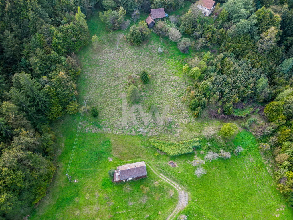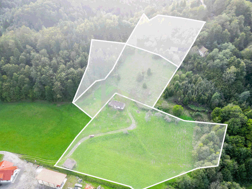2. del (v hribu): cca 1.700 m² stavbnega + 8.000 m² kmetijskega zemljišča.