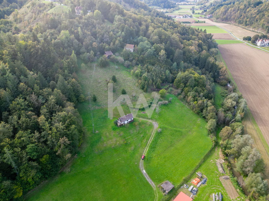 Zemljišče leži na rahlo dvignjeni legi, kar omogoča prekrasen razgled na kraj in dolino, hkrati pa nudi občutek zasebnosti in miru, kot ga ponuja le življenje na podeželju.