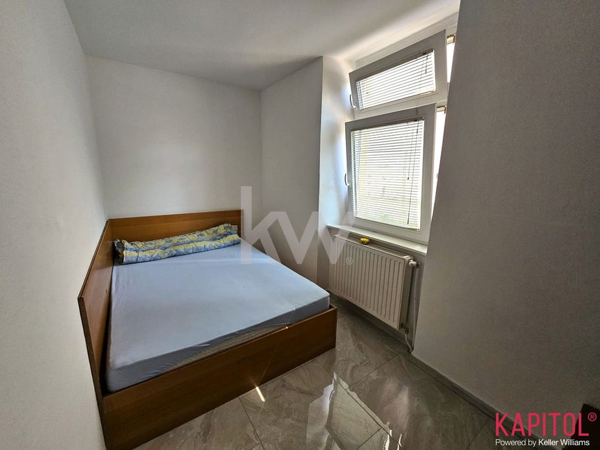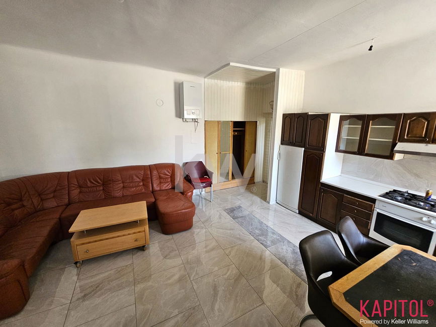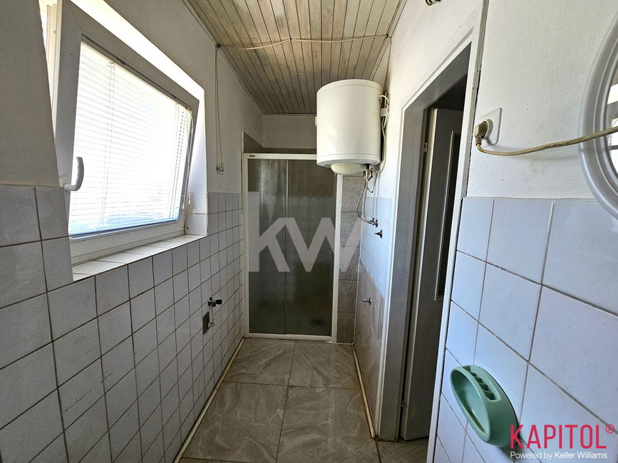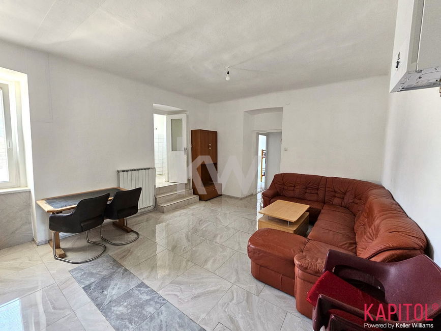 Stanovanje meri 51m2 in obsega bivalni prostor s kuhinjo, dve manjši sobi, kopalnico z WC in 41m2 velik kletni prostor.