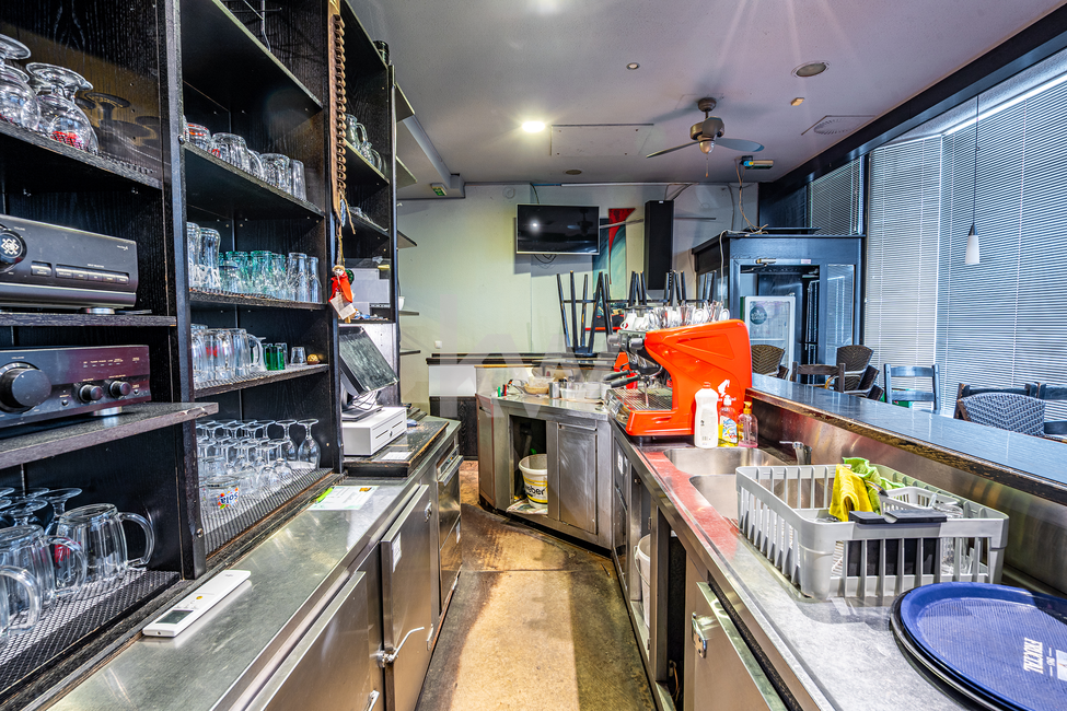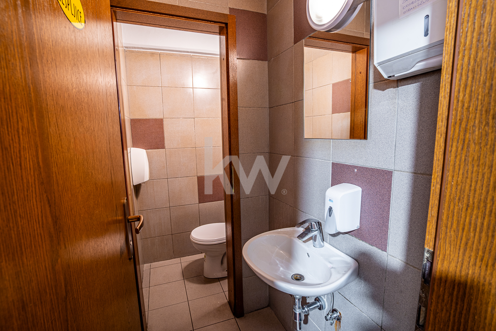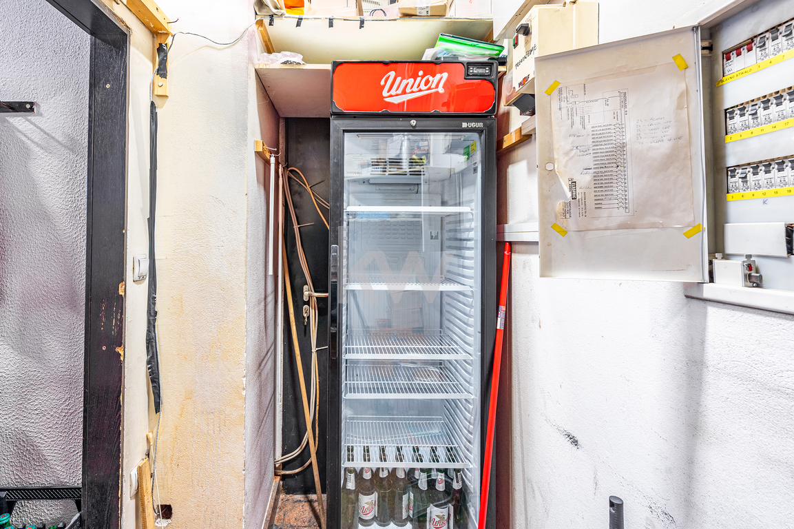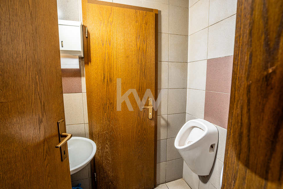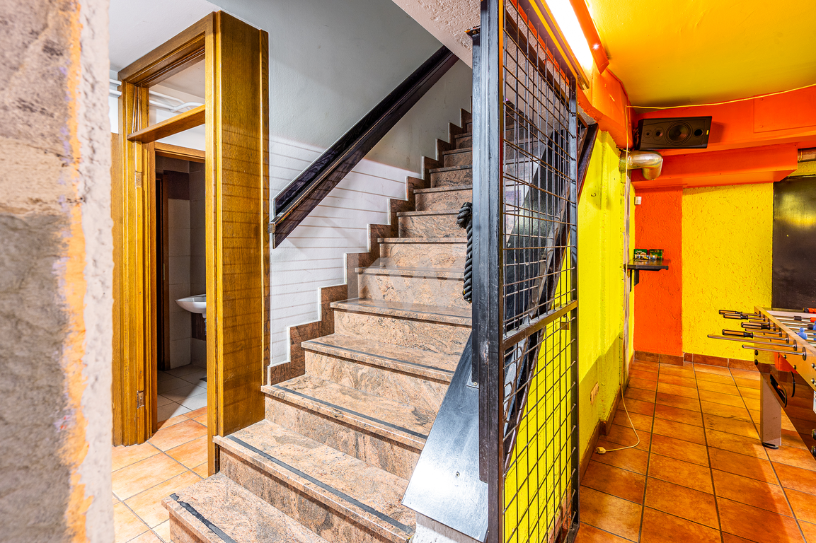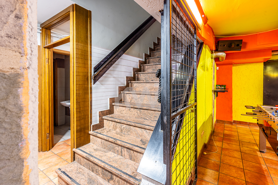 Kletni del dopolnjujejo shranjevalni prostori, dve sobi, tri sanitarije (ločene za osebje in stranke) ter izhod v notranji hodnik objekta. To omogoča funkcionalno ureditev – od delovnega dela, skladišča do prostorov za stranke.