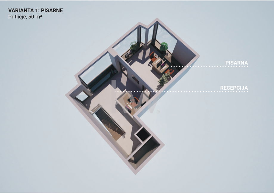 Prostor ponuja številne variante ureditve, kar prikazujejo priložene vizualizacije