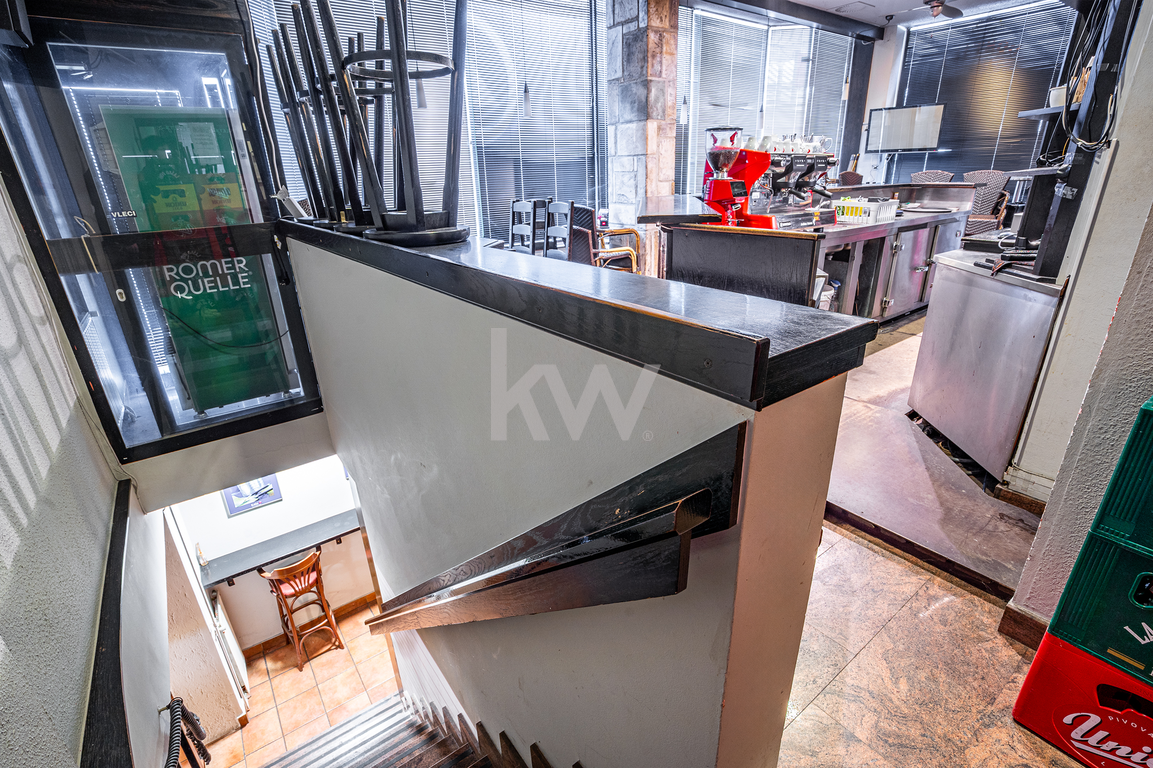 Pritličje zajema večji odprt prostor z visokimi stropi, shrambni del ter notranje stopnišče, ki vodi v spodnji nivo. Zaradi več vhodov je zelo enostavno vzpostaviti ločen dostop za stranke, osebje ali različne poslovne sklope.