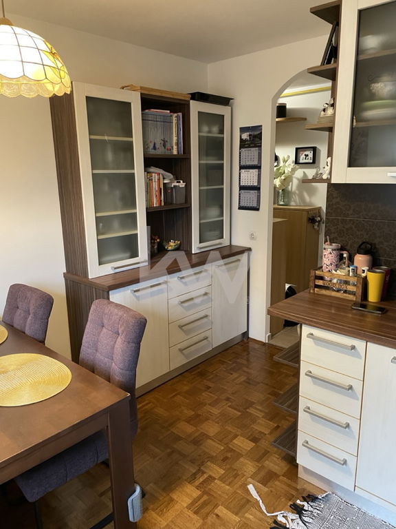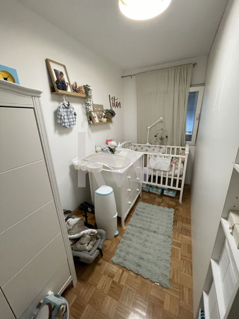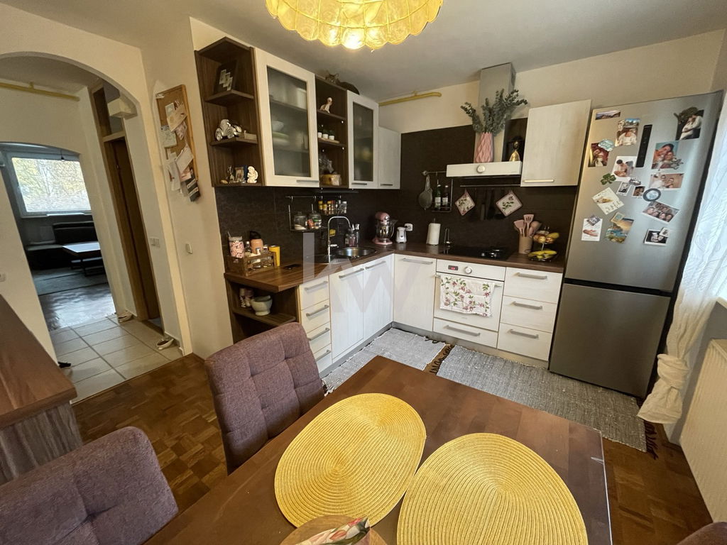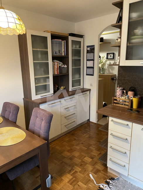 Predsoba, Spalnica, Kuhinja z jedilnico, kopalnica, dnevna soba, otroška soba in zastekljen balkon. Stanovanju pripada tudi prostorna klet.