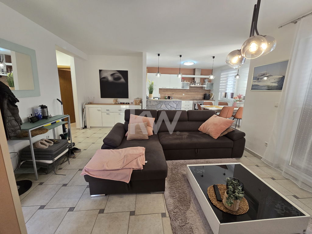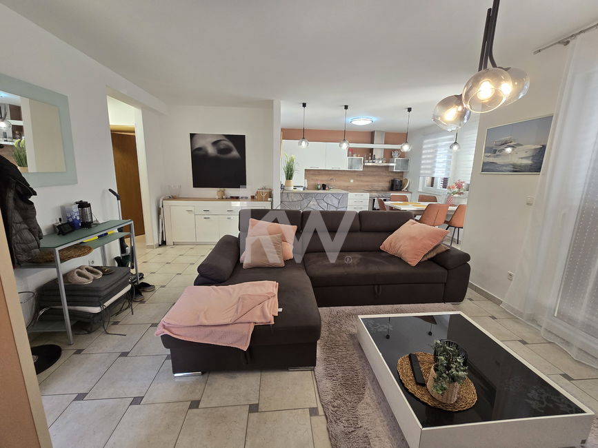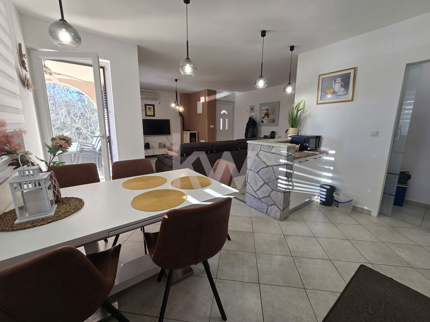 Apartma se prodaja v popolnosti opremljen. Tehnične specifikacije: Tla keramika in parket. Ogrevanje peč na pelete in klimatska naprava. Ogrevanje sanitarne vode električni bojler. Voda javna za uporabo v kuhinji in zasebna za zalivanje in polnjenje bazena. Okna plastična dvoslojna termopan. Fasada 10 cm demit. Nizki obratovalni stroški.