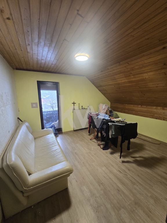Na prodaj je hiša v Dobrovi zgrajena leta 1989. Pritličje in 1 nadstropje ima betonsko ploščo, mansarda lesena tla. Okna so lesena z dvoslojnimi termopan stekli. Streha Eternit. Elektrika javna. Vodovod lastno zajetje. Komunala greznica. Centralno ogrevanje- peč na drva. V kuhinji kaminska peč. Mansarda-podstrešje dobro izolirano s tervol izolacijo. 2 parceli skupaj velikosti 898m2. Hiša je slabo vzdrževana. Dostop do hiše je po asfaltni cesti, zadnjih 300m je makadam.