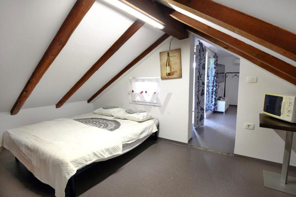 Objekt obsega tri enosobna stanovanja, ki vključujejo spalnico ter dnevni prostor s kuhinjo, ter eno večje stanovanje z dvema spalnicama in prostornim dnevnim prostorom. Vsa stanovanja imajo lastne kopalnice, bivalni prostori pa so svetli in povezani z zunanjimi površinami, saj omogočajo neposreden izhod na teraso ali urejen vrt.