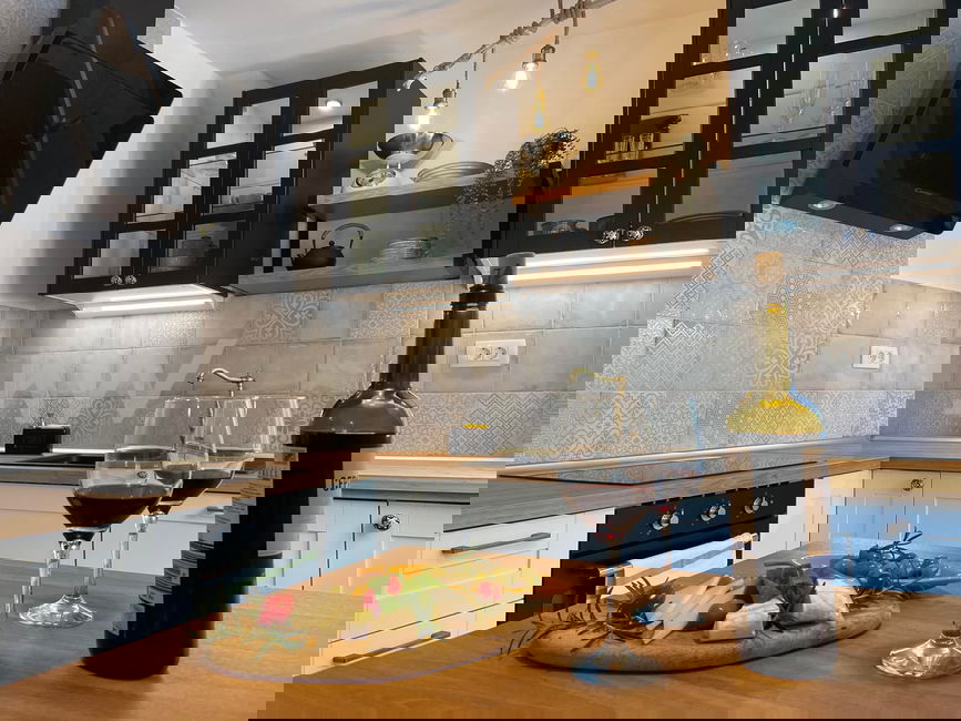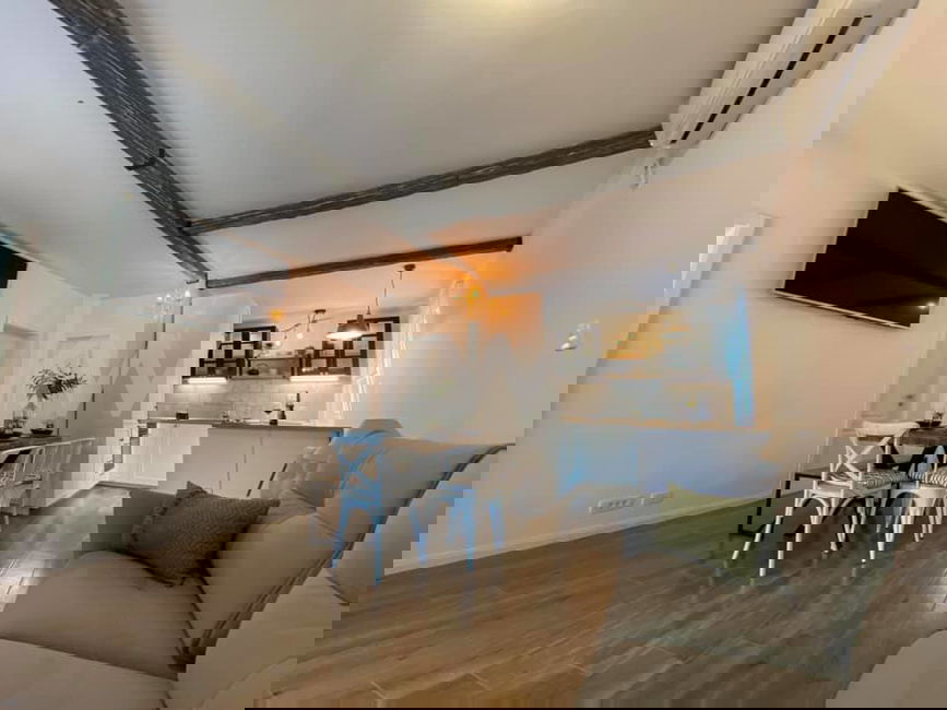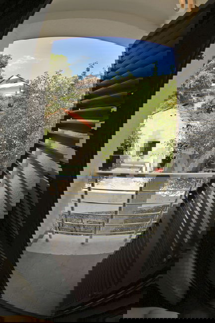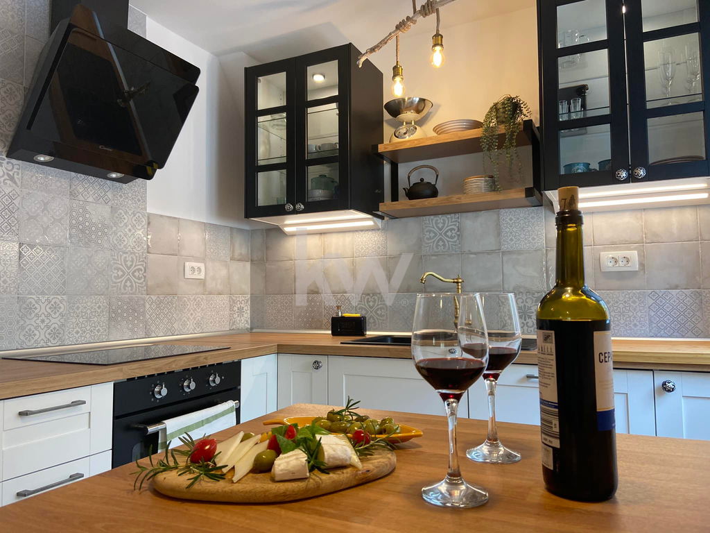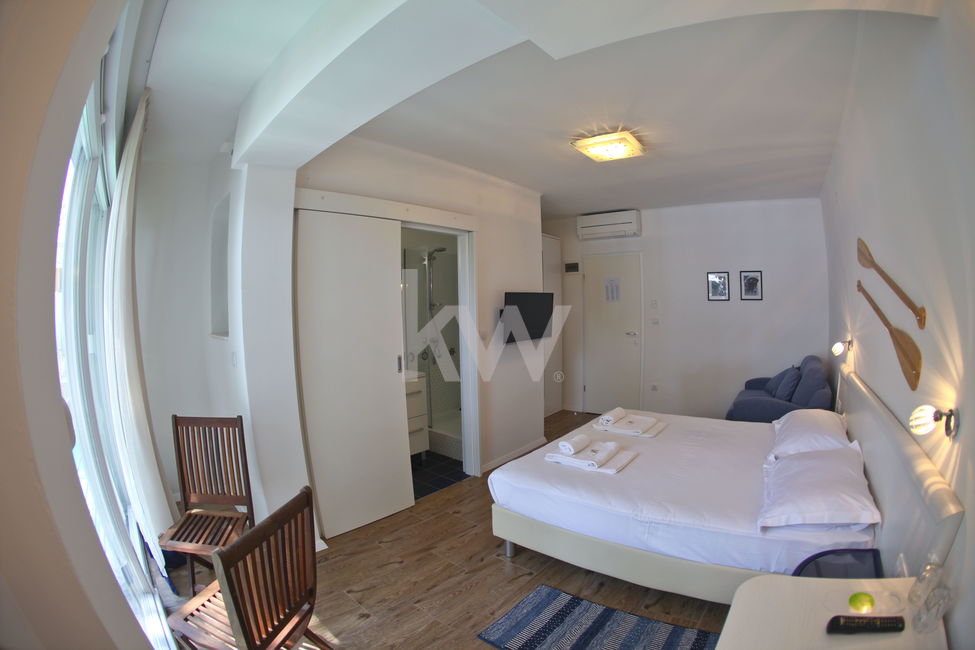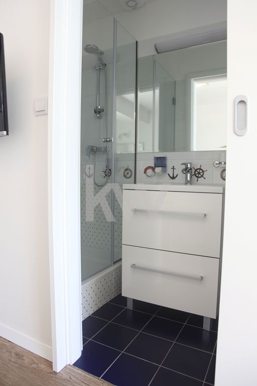 Apartma 2 (45 m²): spalnica, kuhinja z dnevnim prostorom, masažna tuš kabina s turško savno, izhod na strešno teraso