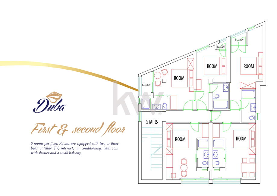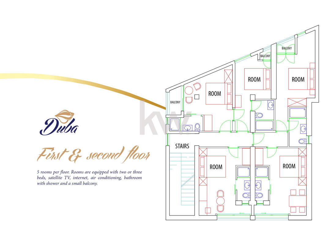 skupaj 8 prostornih sob, vsaka z lastno kopalnico