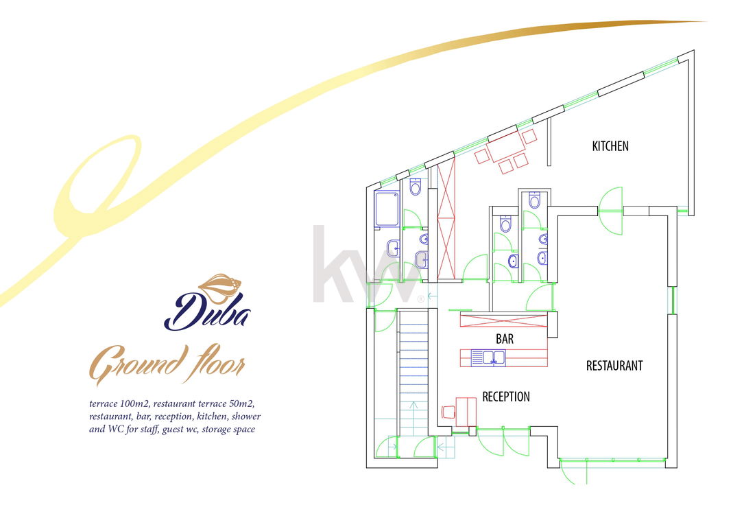 Restavracija sprejme 34 gostov v notranjosti ter dodatna sedišča na terasah (skupaj cca. 60 mest).