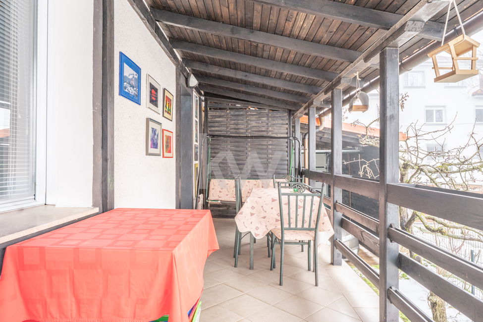 prostoren odprt balkon (31 m²) na zahodni strani s čudovitim pogledom na Pohorje.