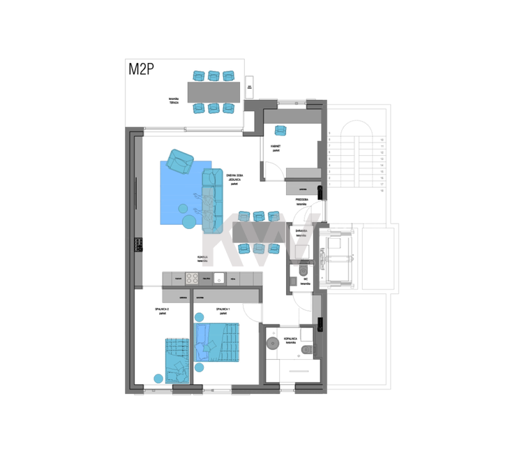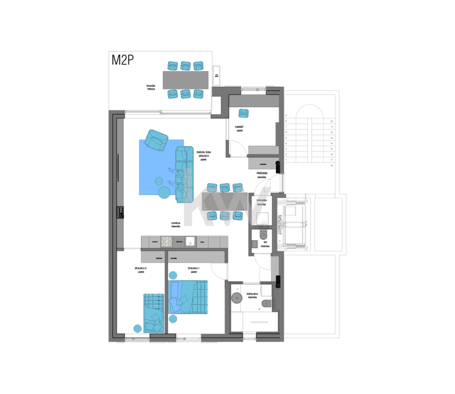 Stanovanje B09E03 ima skupno 89,6 m² neto bivalne površine, premišljeno in funkcionalno razporejeno: