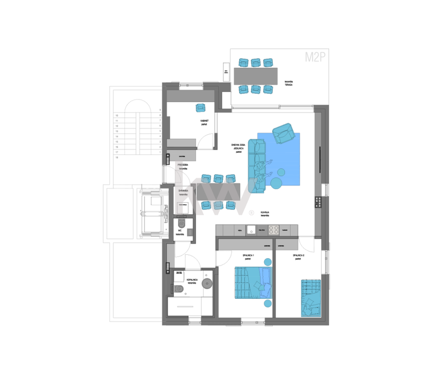 Stanovanje obsega 89,6 m² skupne neto bivalne površine in je zasnovano funkcionalno ter sodobno: