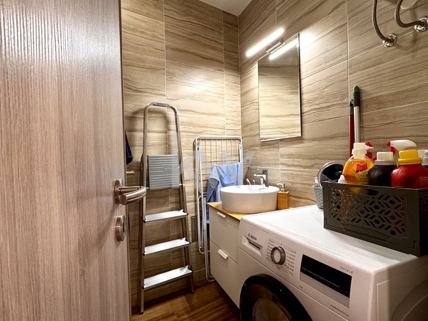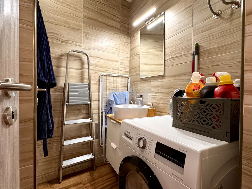 - kuhinja z vsemi aparati: pomivalni stroj, električna pečica, električna kuhalna plošča, velik hladilnik