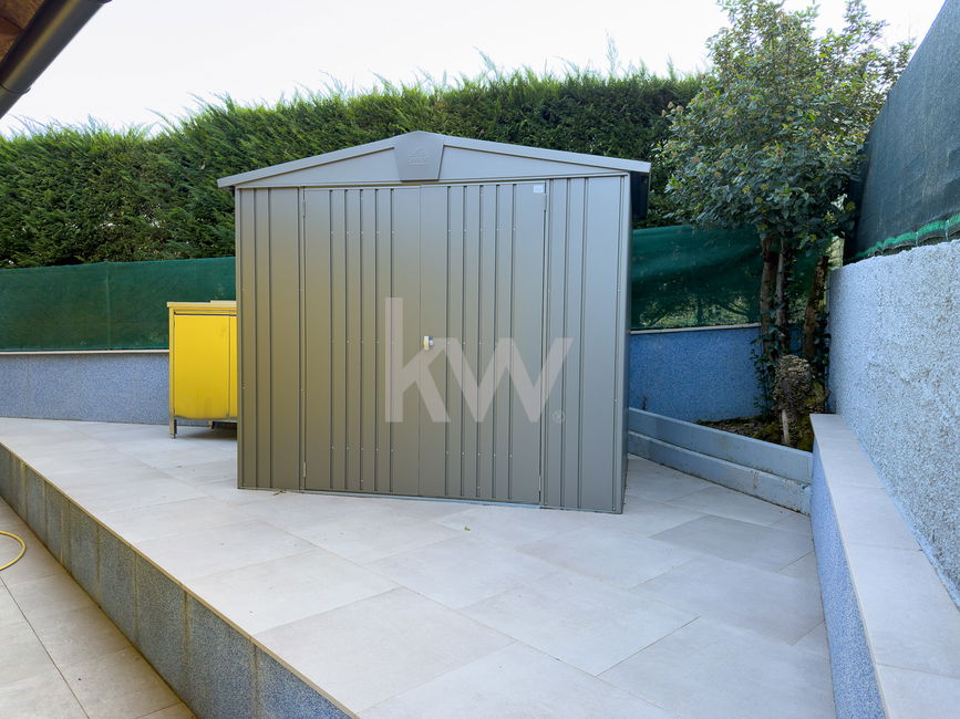 Hiša stoji na zemljišču velikosti 633 m², ki je dvignjeno nad cesto in obdano z zelenjem. Takšna lega omogoča več zasebnosti ter manj hrupa. Dostop je urejen po asfaltirani dovozni poti. Na parceli je urejeno dvorišče z možnostjo parkiranja več vozil, preostanek zemljišča pa nudi dovolj prostora za vrt ali druge zunanje ureditve.