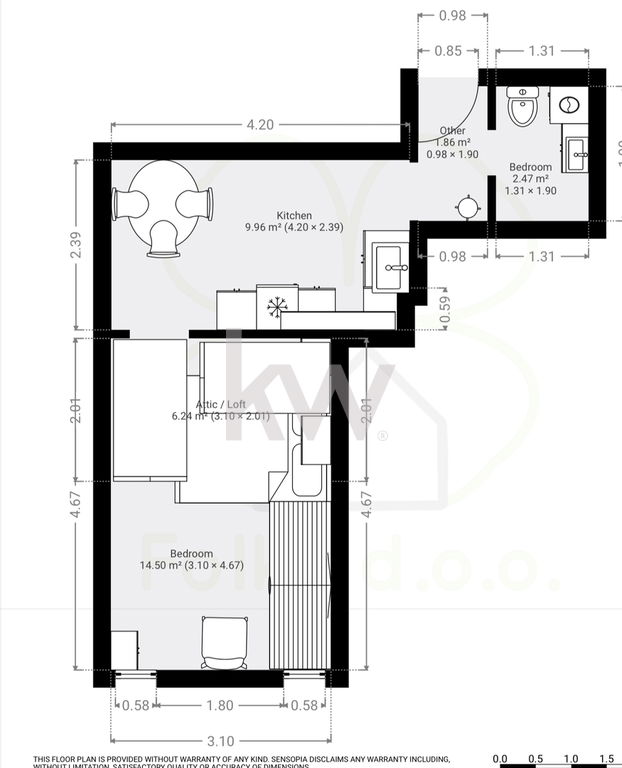 Velikost: 27.5 m² + galerija, skupno 35 m²