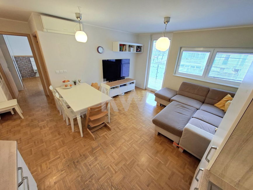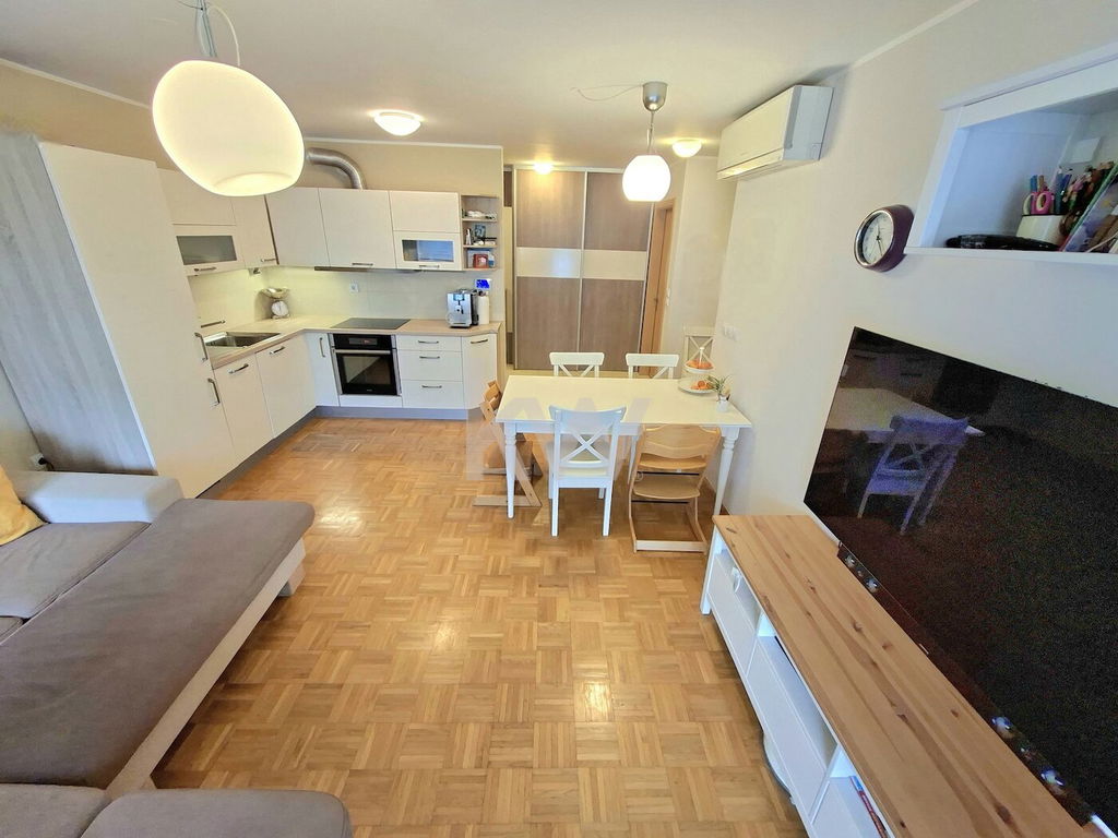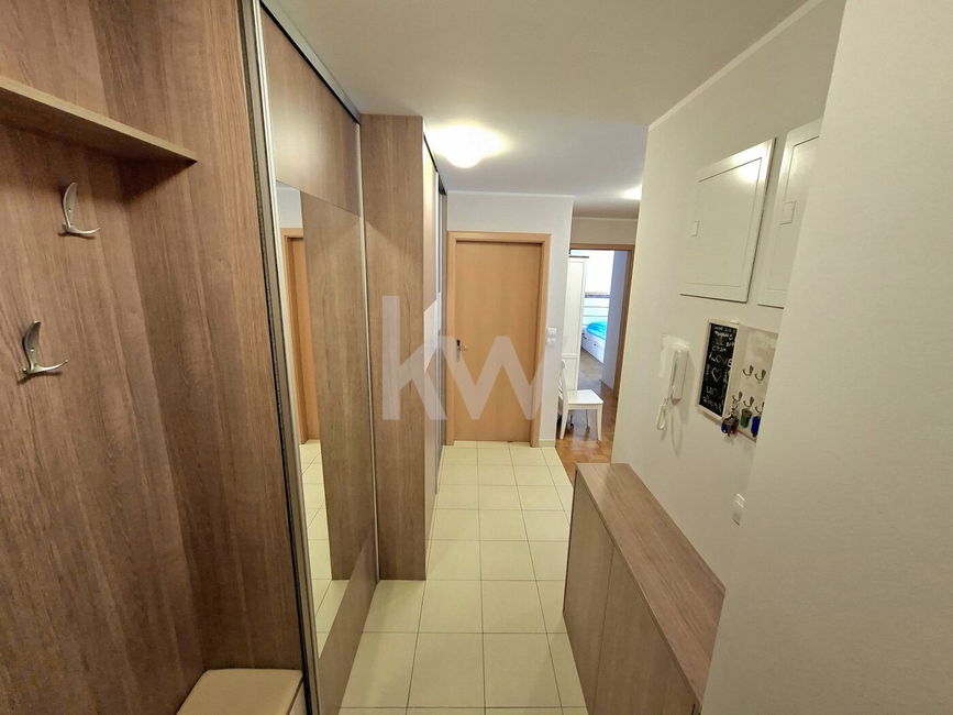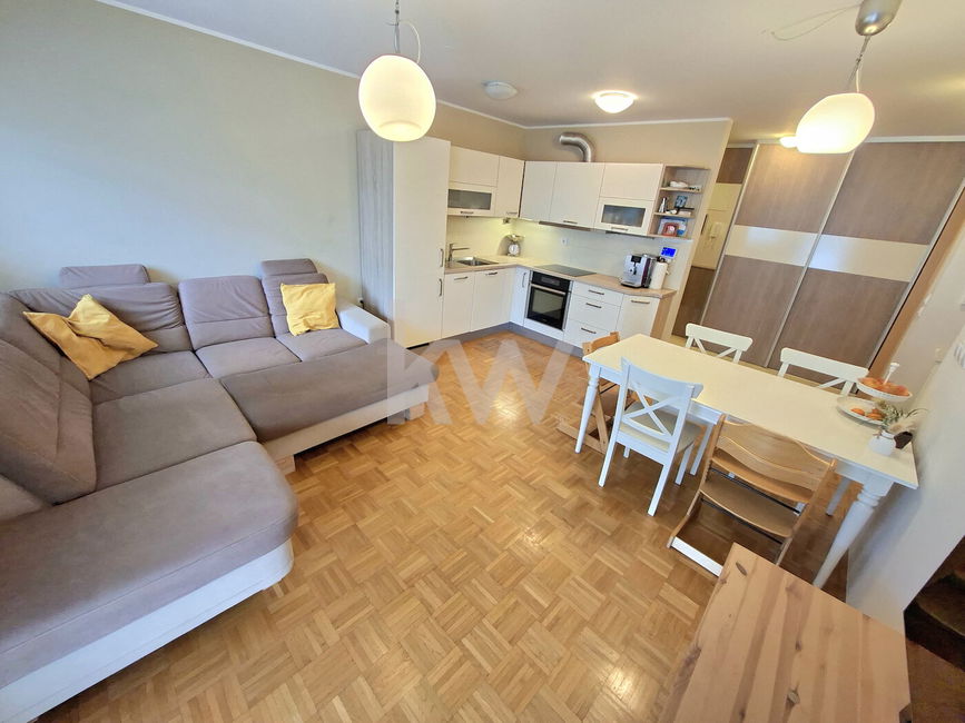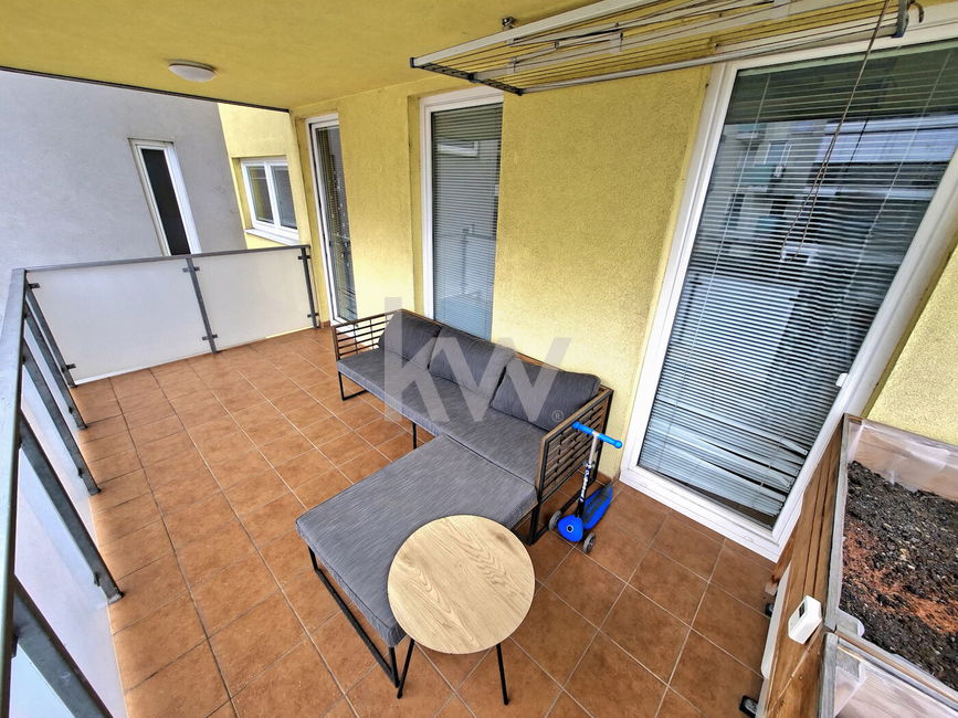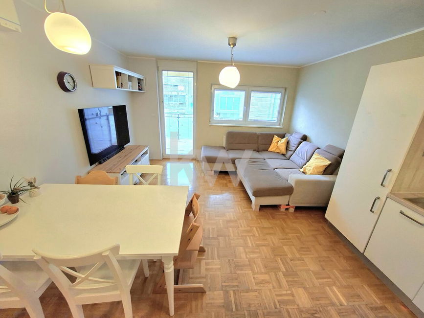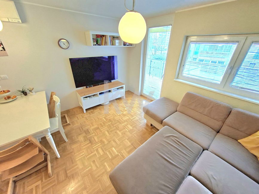 Prodamo vrhunsko 2,5-sobno stanovanje z veliko pokrito teraso, ki se nahaja v 1.nadstropju bloka z dvigalom.