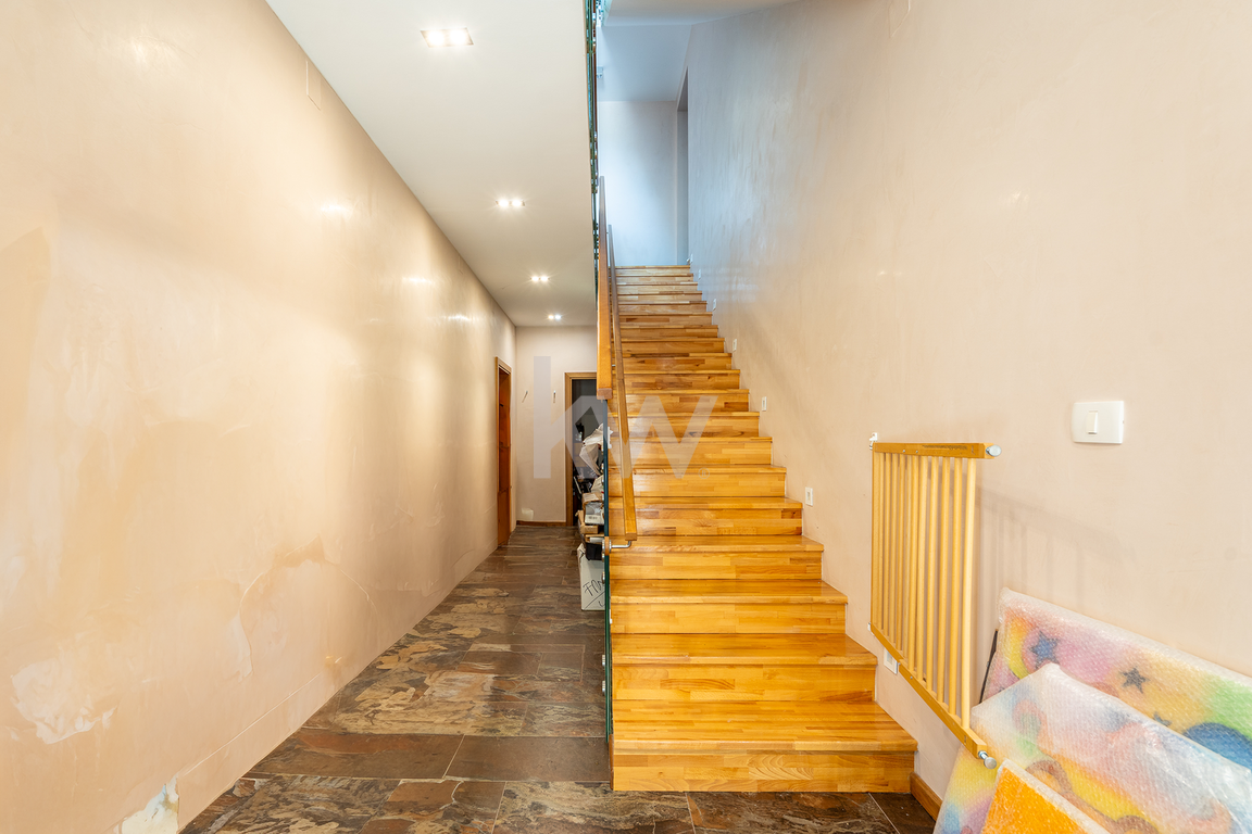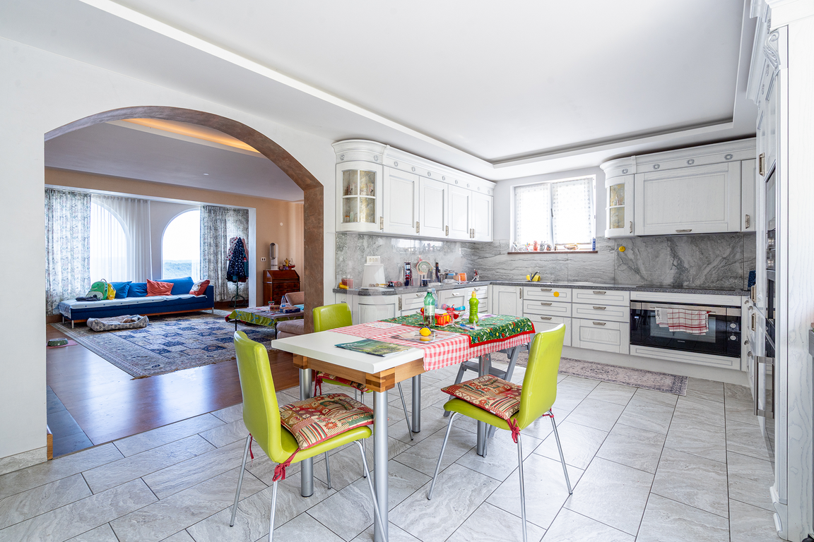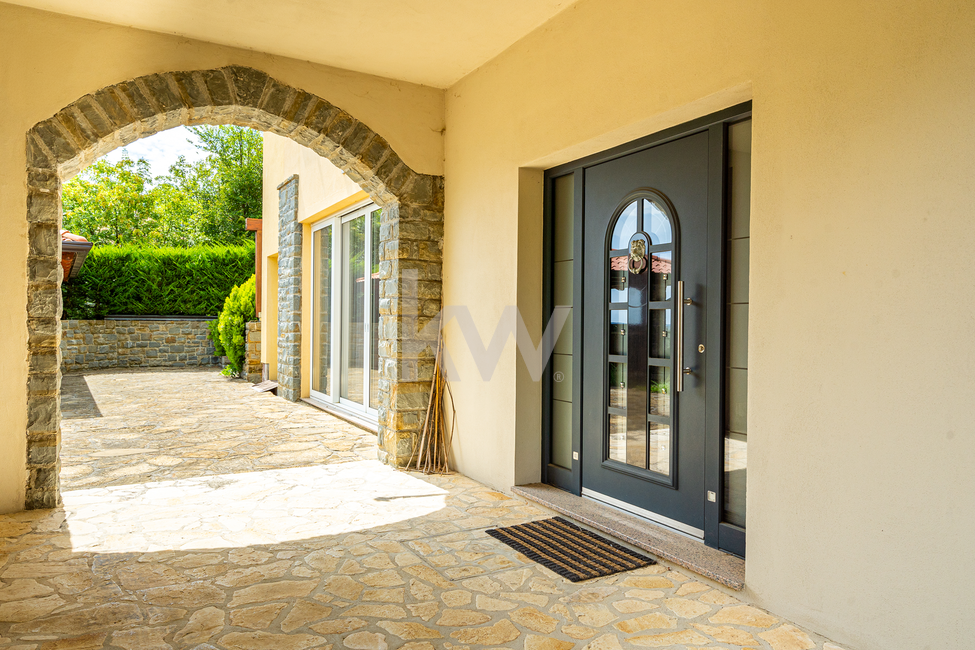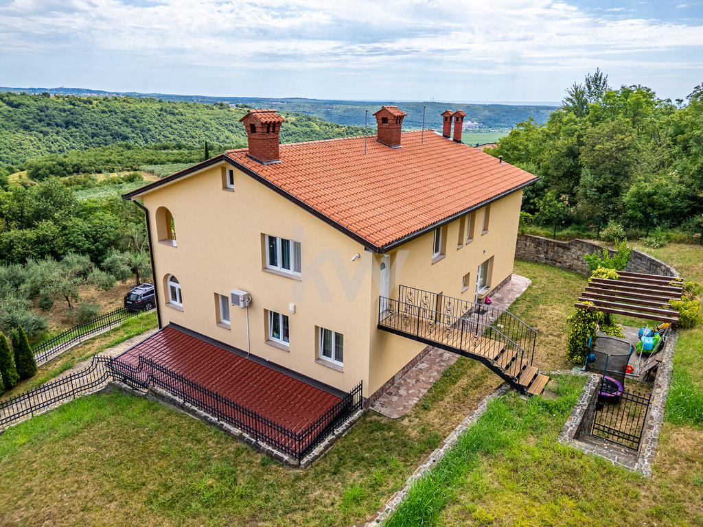 Predstavljamo individualni stanovanjski objekt, ki ima tri ločene bivalne dele in je kakovostno grajen ter ima veliko nadstandardnih detajlov. Velikost zemljišča je 1443 m2 in neto tlorisna površina dela stavbe je 424,4 m2 (bivalni prostor 346,90 m2, shrambe 34,10 m2 in balkoni 43,40 m2). Konfiguracija terena je v naklonu iz višje severne strani proti nižjim južnim stranem. Pred hišo se nahaja nadkrita letna kuhinja in vrt s parkirišči. Za hišo pa se razprostira veliko urejeno dvorišče z dvema enostavnima lesenima objektoma, kjer je bil predviden tudi bazen. Ker so za hišo izvedene terase, so sezidani kamniti podporni zidovi. Celotna nepremičnina je ograjena in pod videonadzorom ter varovana z alarmnim sistemom. Hlajenje je urejeno s klimatskimi napravami (8x) in gretje je urejeno s toplotno črpalko (talno gretje). Nepremičnina ima tudi gradbeno dovoljenje in vso infrastrukturo individualne rabe (telefonijo, vodovod, elektro..). Nadstropja so med seboj povezana z internimi stopnicam in z dvigalom (ki vodi v vse etaže). Dostop do nepremičnine je urejen neposredno iz javne ceste. Nepremičnina nudi neomejene možnosti, bodisi kot družinska hiša ali kot priložnost za investicijo, zato ima velik potencial.