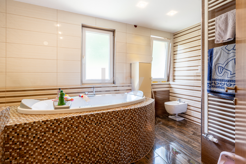 Velika soba, kopalnica, spalnica z balkonom, wc, večja kopalnica z masažno kadjo, garderobna soba, velika soba z balkonom in kopalnico, otroška soba, hodnik