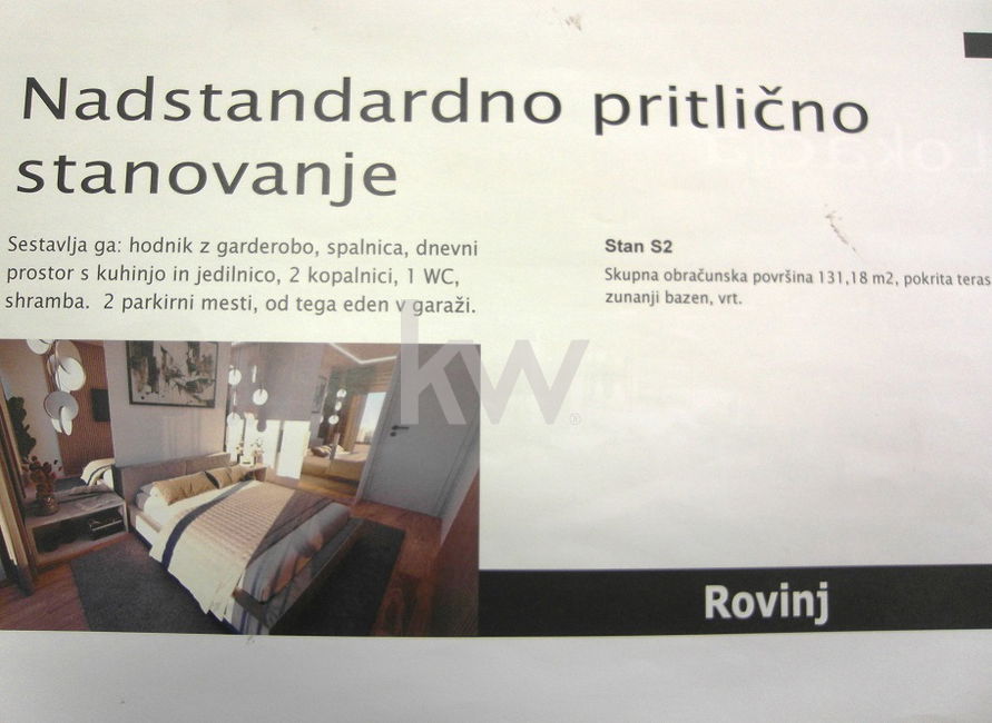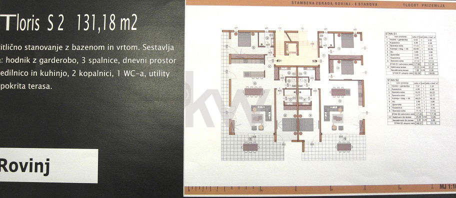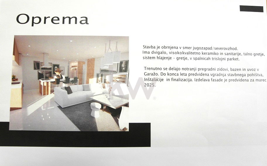 Uporabljeni materiali - visokokvalitetna keramika, troslojni parket v spalnicah, Alu okna, rolete, video nadzor.