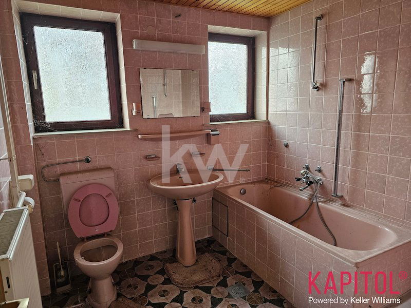 Naprodaj je samostojna hiša K+VP+M bruto površine 212m2 (150m2 stanovanjske površine + 34m2 klet + terasa 10m2 + tehnični prostor 18m2). Po podatkih iz GURS je zgrajena l.1966.